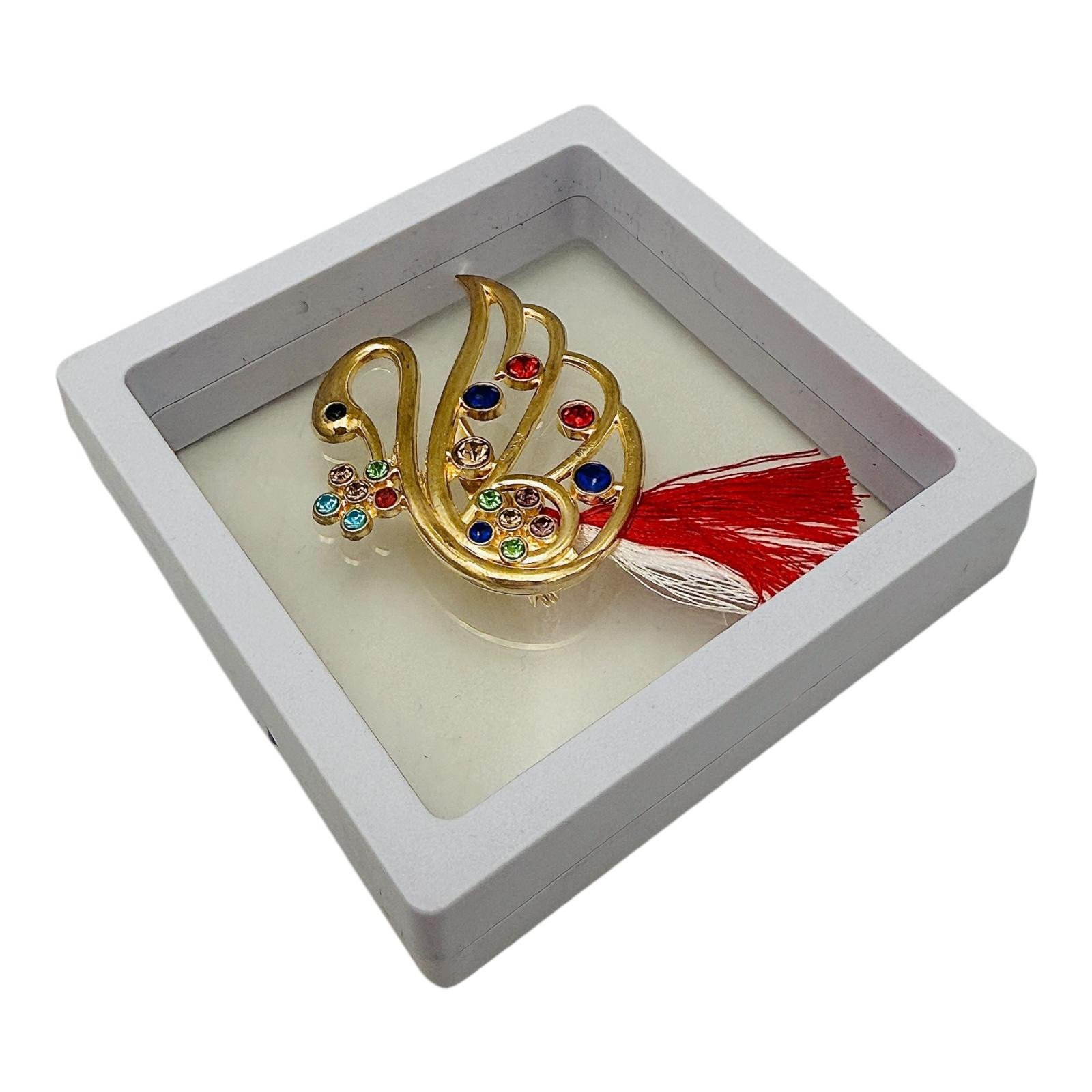 Brosa Martisor, Lebada Deosebita in cutie cu expunere 3D (alb/negru), 8.5×8.5×2cm
