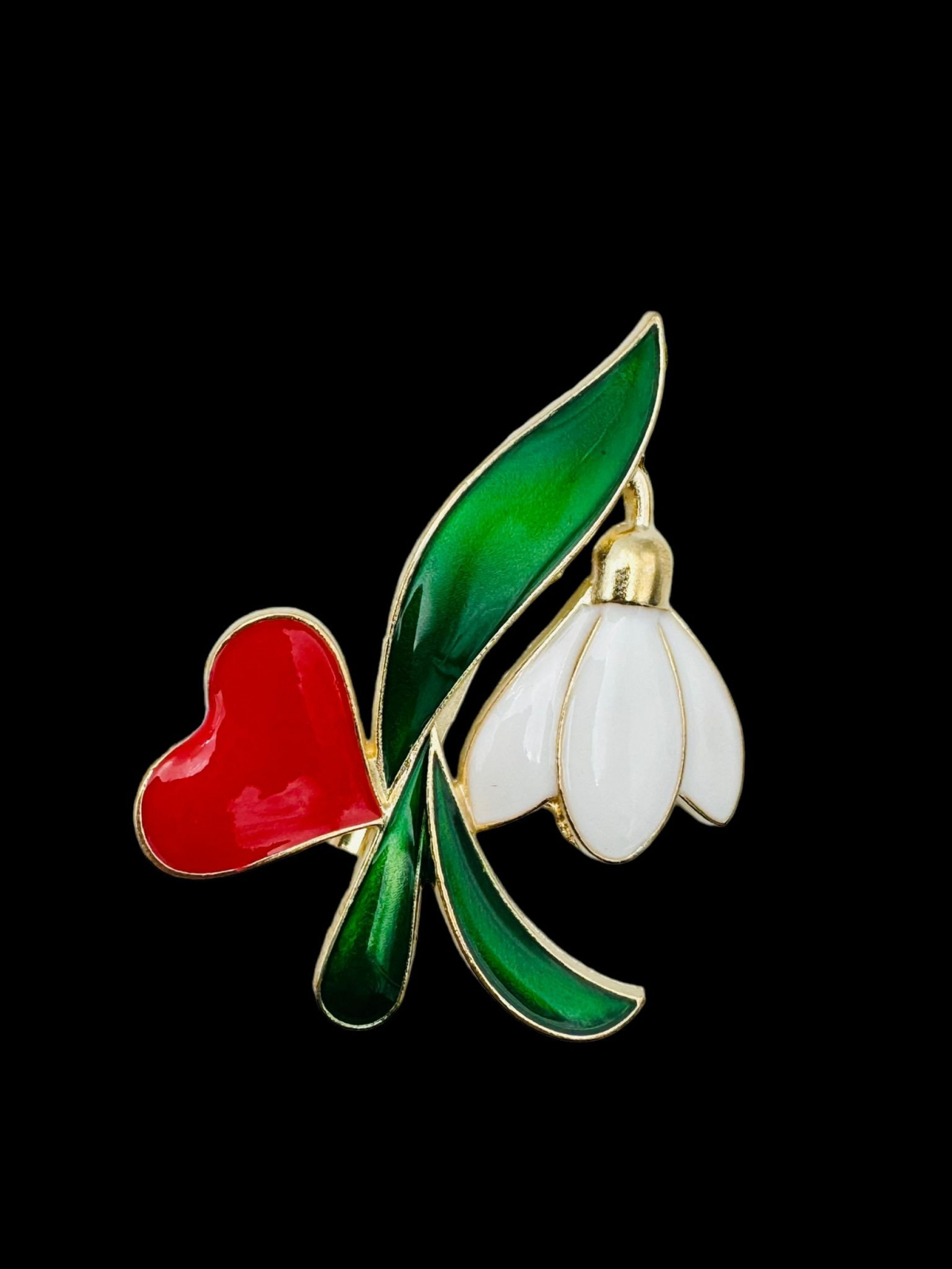 Brosa Martisor marime mare, Ghiocel cu Inimoara, editie 2025, 6×5cm,