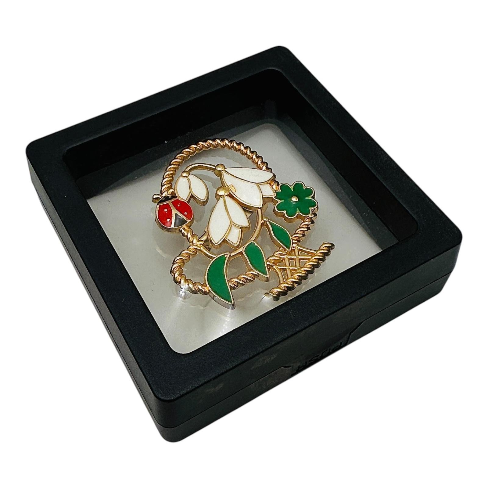 Brosa Martisor marime medie in cutie cu expunere 3D (alb/negru) Cosulet cu Ghiocei, 6.5×6.5×2cm