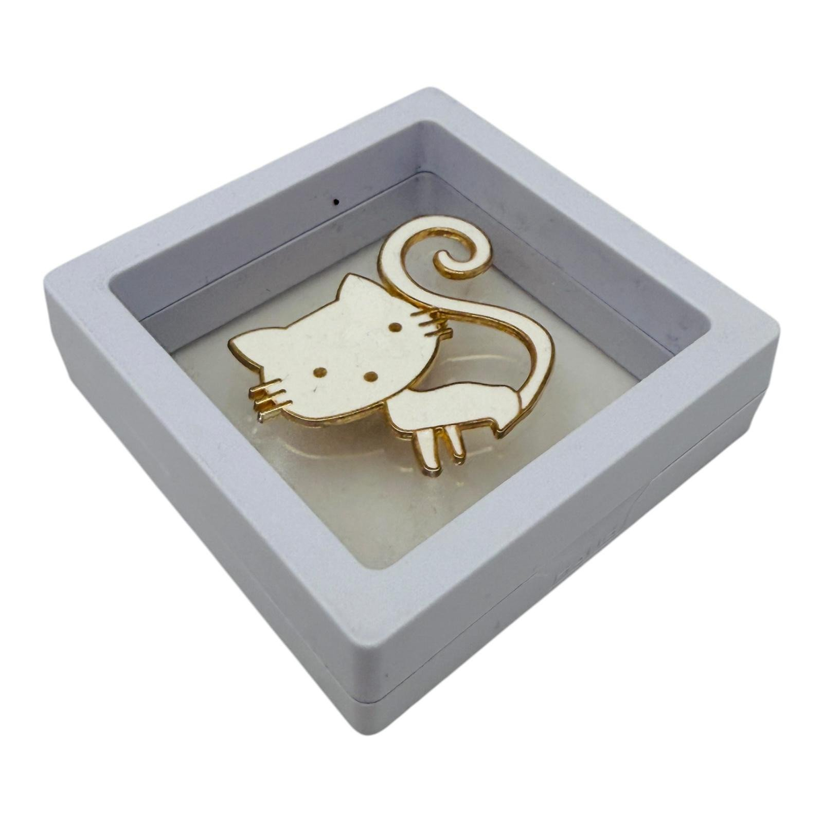Brosa Martisor marime medie in cutie cu expunere 3D (alb/negru) Pisicuța Dragalasa, 6.5×6.5×2cm