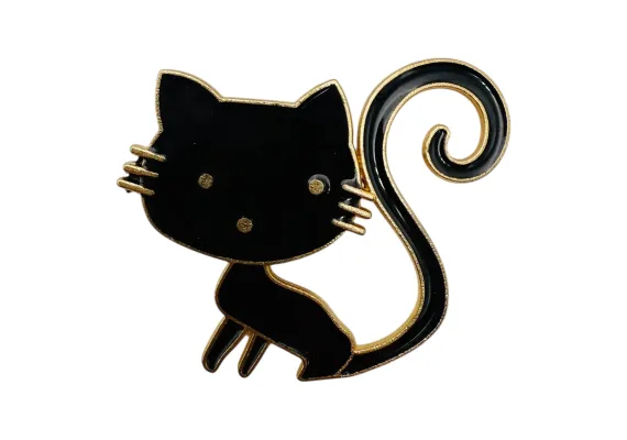 Brosa Martisor, marime medie,pisicuță dragalasa neagra, ediție 2025, 4.5x3.5 cm