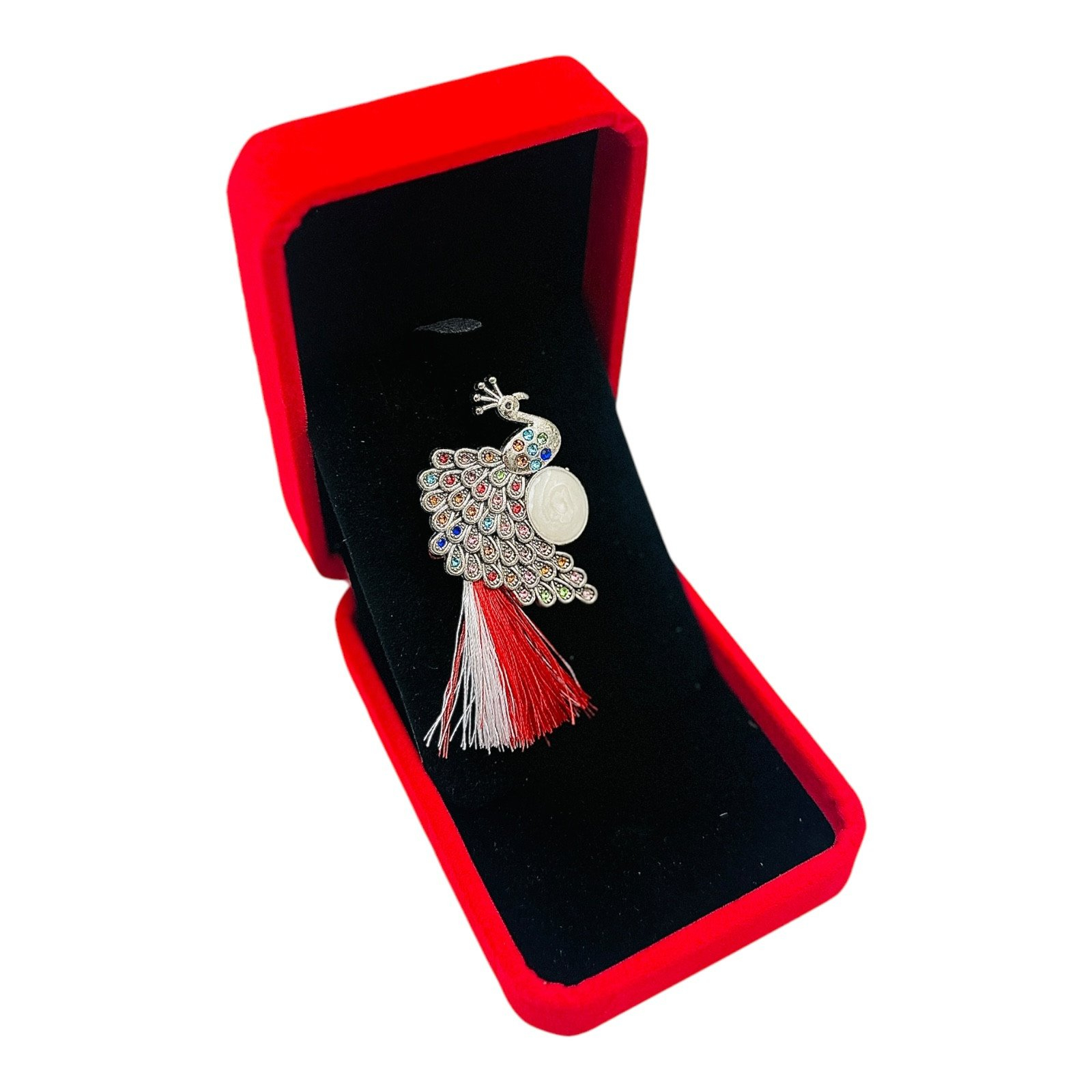 dauga o nota de opulenta si sofisticare in colectia ta de accesorii cu aceasta brosa spectaculoasa in forma de paun, disponibila pentru comenzi . Inspirata din frumusetea naturii, brosa este decorata cu strasuri de inalta calitate, dispuse meticulos pentru a crea un joc impresionant de lumini si culori. Designul sau rafinat este completat de fire subtiri in nuante de alb si rosu, care adauga un aer de gratie si fluiditate intregului aspect.Aceasta piesa unica de bijuterie este perfecta pentru clientele care cauta ceva exclusivist, fie pentru ocazii speciale, fie pentru a-si transforma tinutele zilnice in adevarate declaratii de stil. Cutia rosie eleganta in care este prezentata amplifica senzatia de lux, fiind ideala si pentru a fi oferita cadou.Avantaje pentru vanzare :Design atemporal, potrivit pentru diverse gusturi.Calitate premium, garantata sa impresioneze orice client.Ambalaj elegant, gata pentru prezentare directa.Fii distribuitorul care ofera accesorii ce emana eleganta si rafinament. Aceasta brosa este alegerea perfecta pentru a cuceri segmentul premium al pietei.