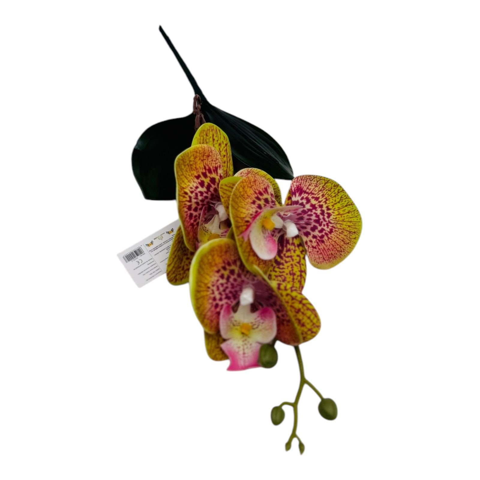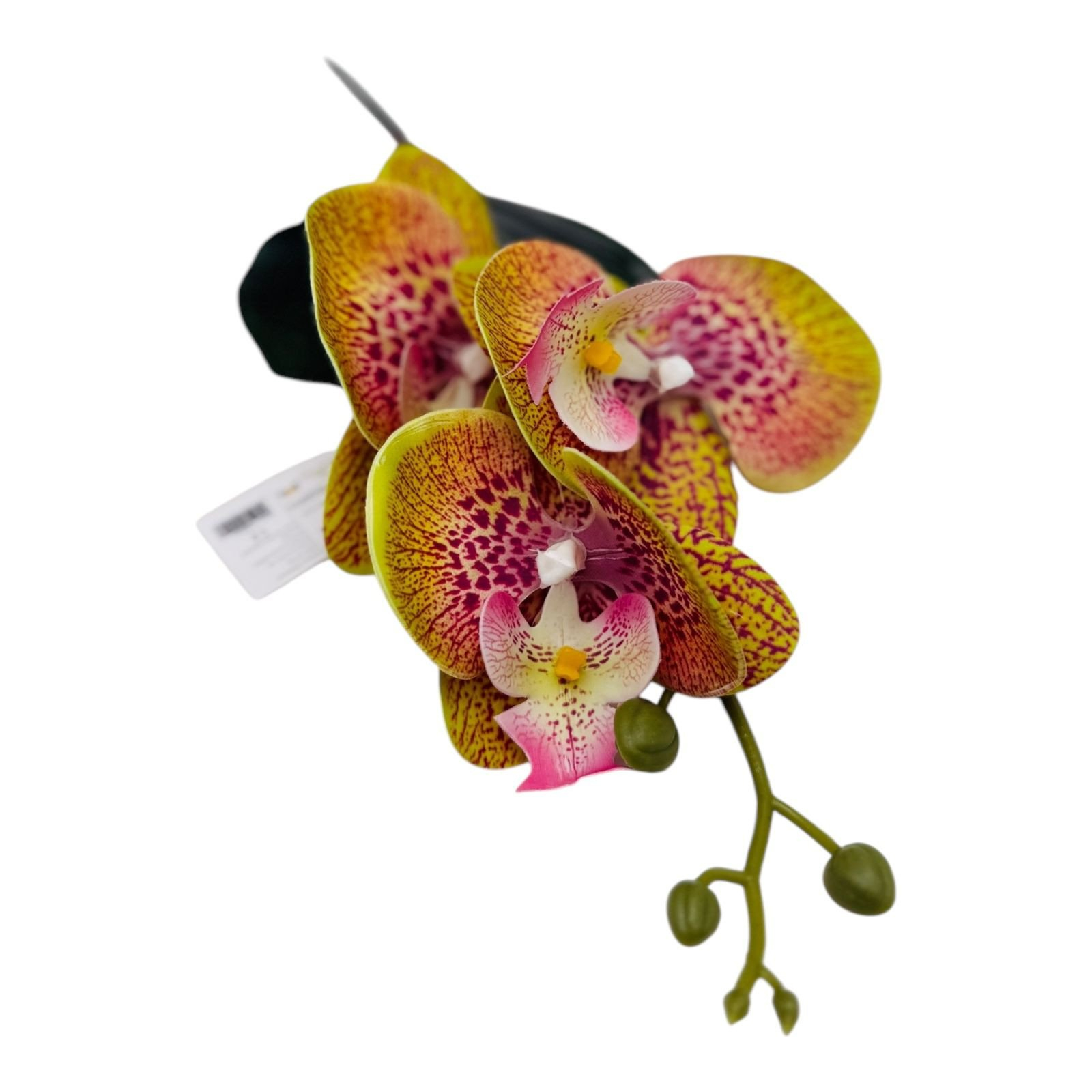 „Orhidee artificială deosebită, creată cu un design sofisticat pentru a aduce eleganță și frumusețe în orice decor. Această orhidee include 3 flori duble spectaculoase și 5 boboci, toate realizate cu o atenție deosebită la detalii pentru a reda fidel delicatețea și grația florii naturale.Fabricată din materiale de calitate superioară, această piesă decorativă impresionează prin aspectul său realist și durabilitatea sa, fiind perfectă pentru decoruri interioare rafinate, aranjamente florale speciale sau evenimente elegante. Disponibilă , este ideală pentru florării, organizatori de evenimente sau designeri care doresc să creeze ambianțe de impact. Alege această orhidee pentru un decor sofisticat și plin de stil!”
