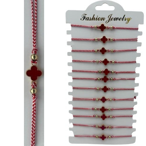 Set 12 Bratari Martisor cu snur reglabil, Talisman protector rosu,