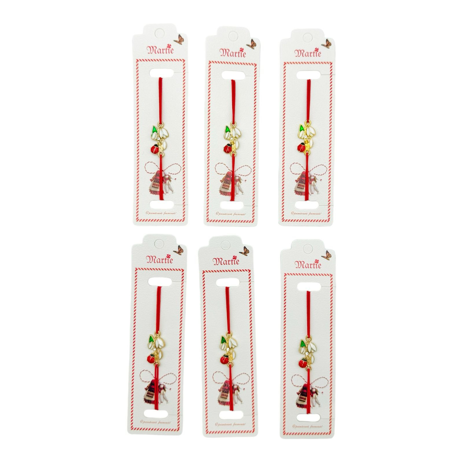 Set 24 de Bratari Martisor, Ghiocel Norocos, snur rosu elastic, model 2025,