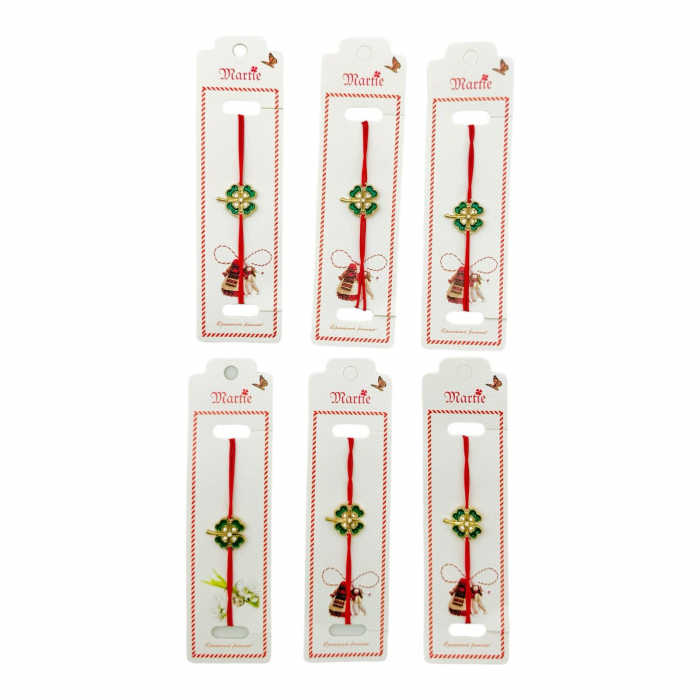 Set 24 de Bratari Martisor, Trifoi Norocos, snur rosu elastic, model 2025,