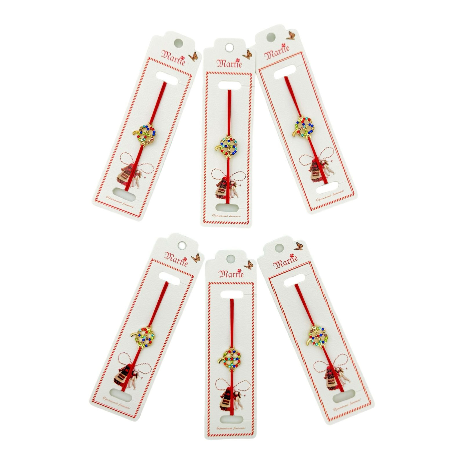 Set 24 de Bratari Martisor, Trifoi Norocos, snur rosu elastic, model 2025,