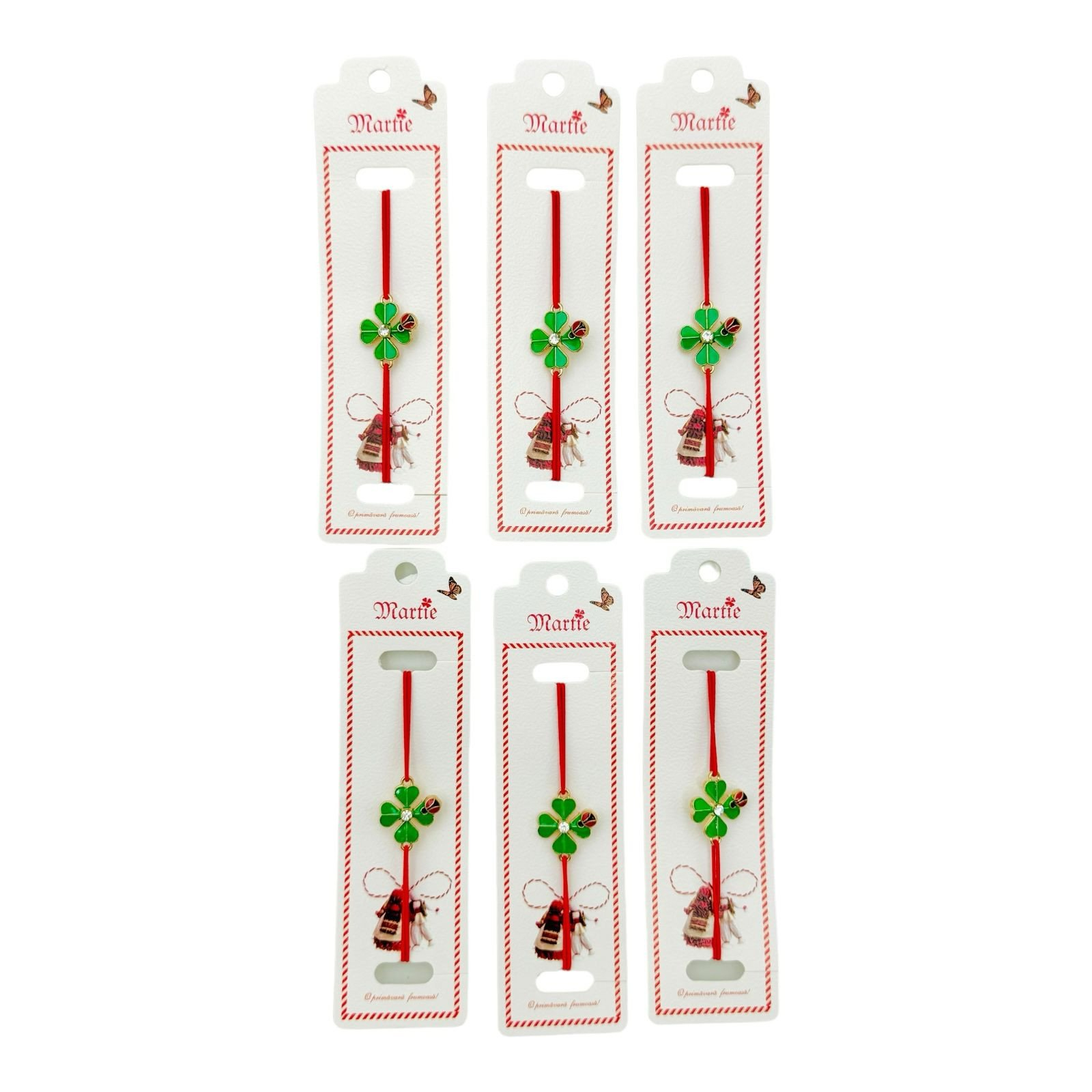 Set 24 de Bratari Martisor, Trifoi Norocos, snur rosu elastic, model 2025,