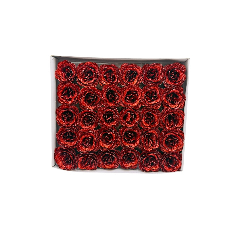 Set 30 trandafiri decorativi rosu intens cu sclipici - pe sarma, pentru aranjamente