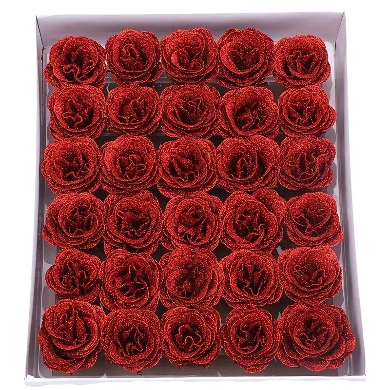 - Trandafiri din spuma EVA acoperiti cu sclipici, aspect elegant.