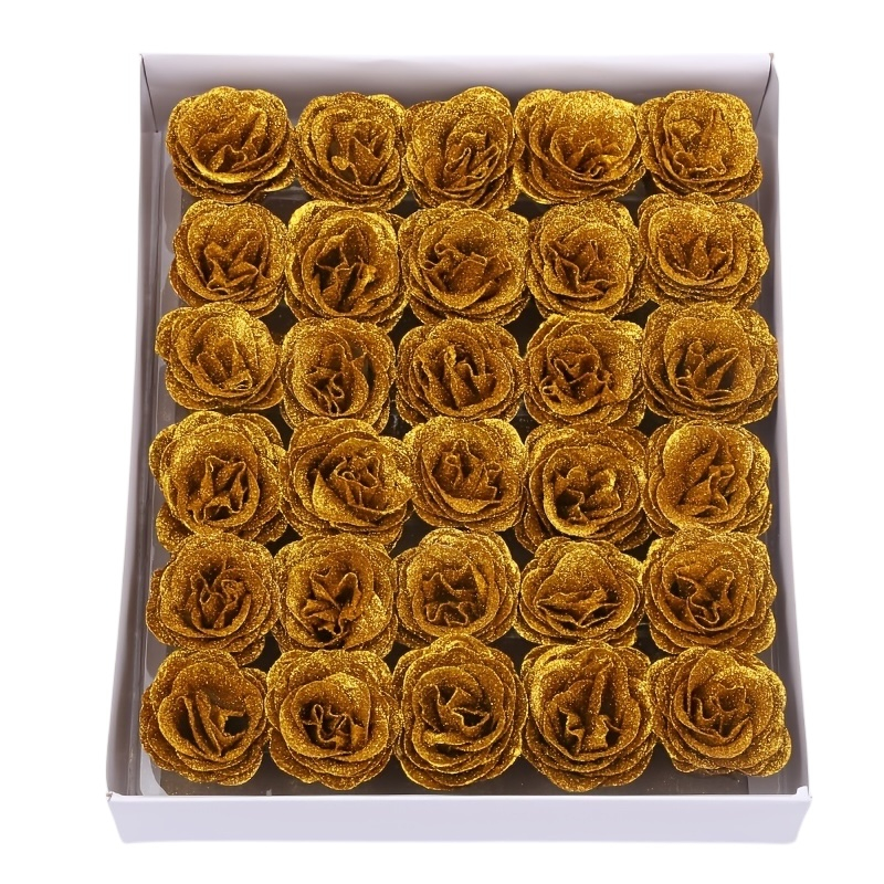 Set 30 trandafiri decorativi gold supreme cu sclipici - pe sarma, pentru aranjamente