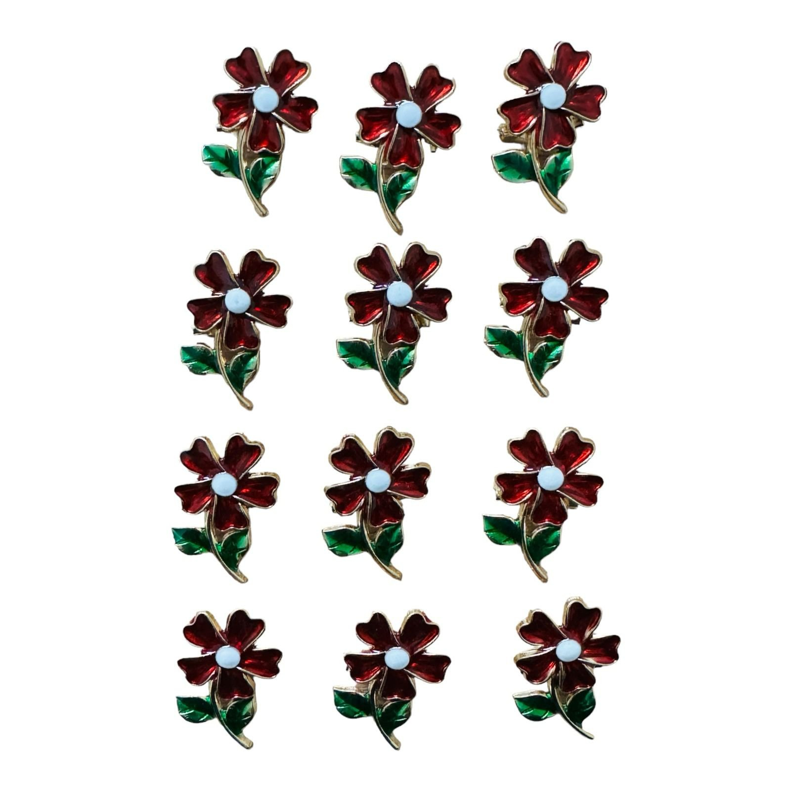 Set12 Brose Martisor marime mica, 3.5cm, Floare Rosie