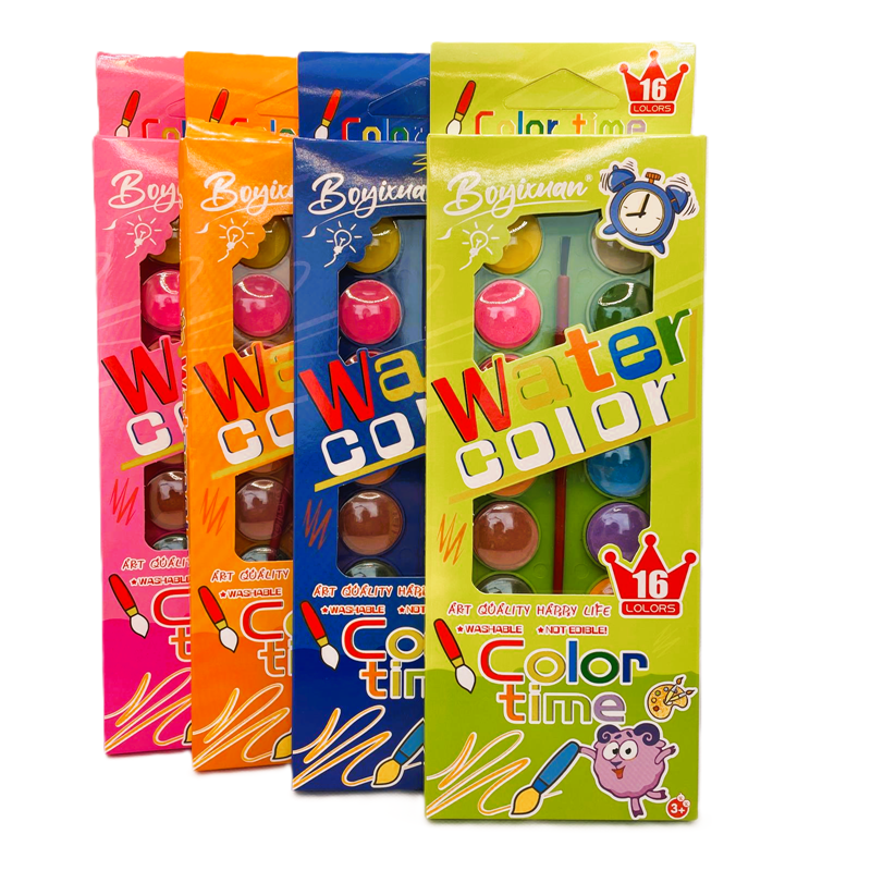 Setul de acuarele pastila Boyixnan cu 16 culori ofera o paleta variata si vibranta, perfecta pentru pictura si creatii artistice. Aceste acuarele sunt usor de folosit si se dizolva rapid in apa, oferind culori intense si un finisaj neted pe hartie sau alte suprafete. Ideal pentru copii, elevi sau artisti amatori, acest set de acuarele este perfect pentru activitati scolare, hobby-uri si proiecte creative. Ambalaj compact si practic pentru depozitare usoara.
