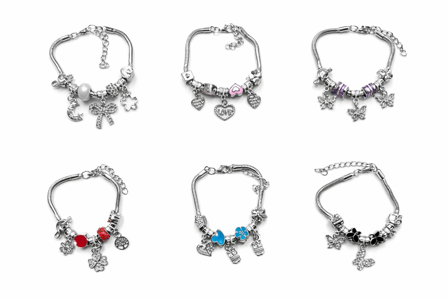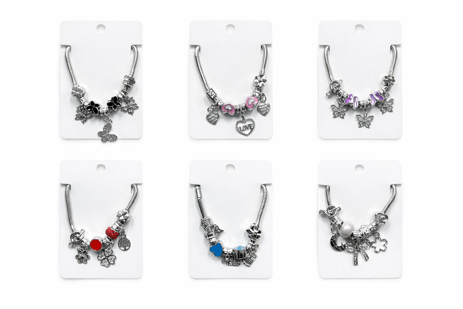 Set 12 bratari martisor icu charmuri decorative ambalaj individual 9.5x8cm