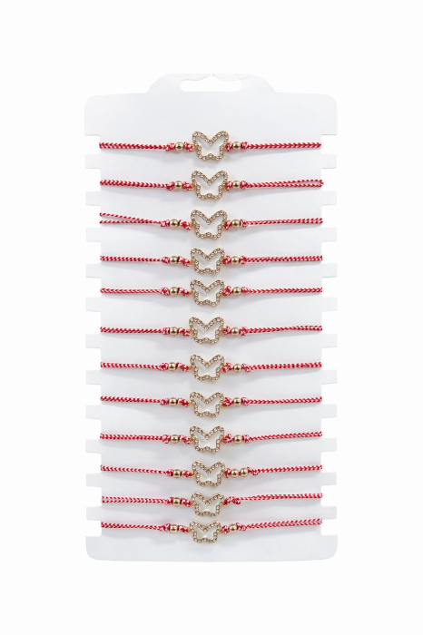 Eleganta intalneste traditia in acest set 12 bratari Martisor reglabile, Fluture auriu cu cristale. Finisajul auriu al pandantivului adauga o nota de rafinament, facand din acest martisor un cadou memorabil pentru doamnele si domnisoarele din viata ta.