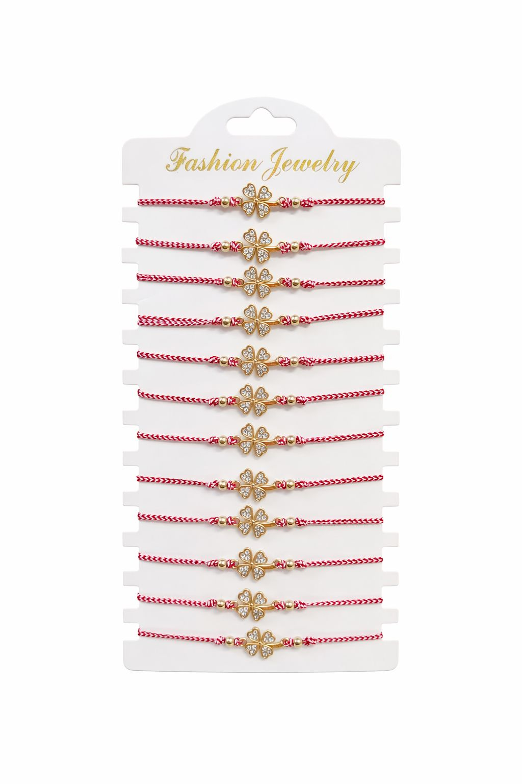 Daruieste succes si eleganta cu acest set 12 bratari Martisor reglabile, Trifoi cu cristale. Combinatia dintre simbolul clasic al trifoiului si stralucirea moderna a cristalelor face din acest accesoriu un martisor memorabil si plin de energie pozitiva.