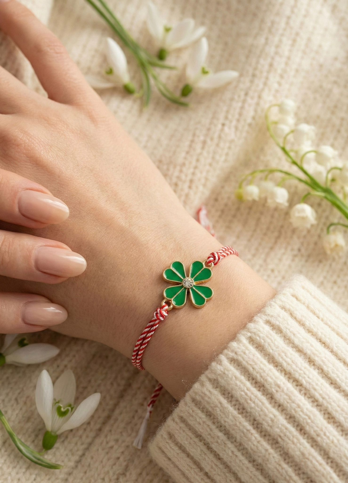 Alege simplitatea si puterea unui simbol consacrat cu acest set 12 bratari Martisor reglabile, Trifoi norocos. Trifoiul cu patru foi este renumit pentru energia sa pozitiva, fiind cel mai cautat accesoriu in perioada martisorului.