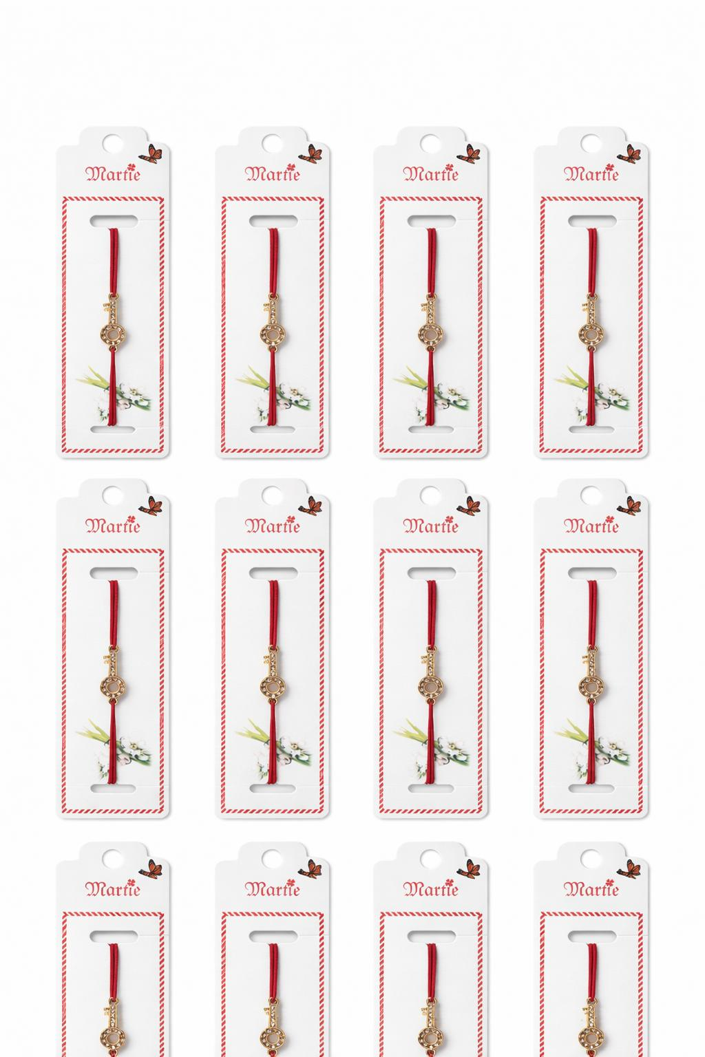 Acest set de 24 bratari martisor este dedicat succesului, noilor inceputuri si oportunitatilor, avand un design elegant si o simbolistica puternica. Fiecare bratara este realizata cu snur rosu elastic, este ambalata individual si are dimensiunea de aproximativ 12 x 3 cm. Elementul central este un charm auriu in forma de cheie, decorat cu strasuri stralucitoare, cunoscut drept simbol al succesului si al deschiderii drumurilor favorabile.