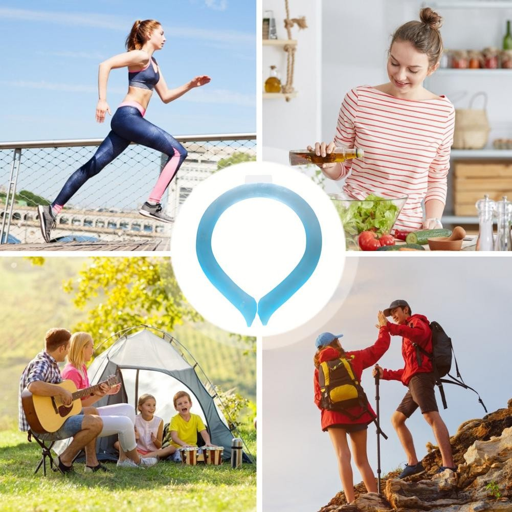Dispozitiv De Racorire Tip Guler, Flippy, Pentru Scaderea Temperaturii Corpului, Cu Racire Rapida, Reutilizabil, Non-Toxic, TPU, Diametru de 120 mm vă va oferi imediat o senzatie de racorire în timpul valurilor intense de căldură de vară, în vacanțe sau în zonele fără aer condiționat ale birourilor, caselor sau mașinilor, pur pe o bază ecologică naturală, fără nicio alimentare suplimentară cu energie electrică. Astfel, poate ajuta semnificativ la prevenirea insolației sau supraîncălzirii periculoase a corpului în lunile de vară.