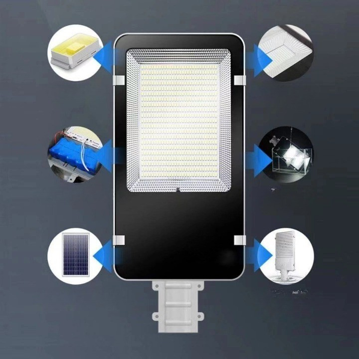 Informatii utile: Forma:Dreptunghi, Tip intrerupator:Senzor de lumina, Tip lumina:Rece, Material:Metal ABS Sticla, Utilizat pentru:Gradina Terasa Casa, Durata de incarcare:5 h 8 h, Putere:100 W, Lungime:38.5 cm, Latime:14.2 cm, Diametru:38.5 cm, Autonomie:8 h 12 h, Continut pachet:1xProiector LED pentru stalp, casa, perete cu suport metalic inclus, , 38,5 cm x 14,2 cm, Rezistent la Apa IP65, cu Panou Solar, 240 COB LED, 100 W, Senzor de lumina, Timer, cu Telecom, Numar bucati:1, Culoare:Negru, Tip montare:Prin fixare, Caracteristici cheie:Rezistenta la apa, Tip acumulator:Li-Ion, Clasa de protectie:IP65, Temperatura culoare:6500 k
