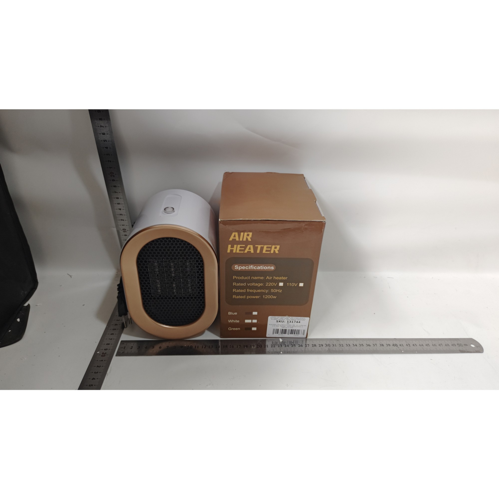 Informatii utile: Culoare:Alb, Greutate:800 g, Latime:12.5 cm, Lungime:19.5 cm, Destinat pentru:Interior, Design:Compact, Trepte putere:2, Tensiune alimentare:220 V, Functii:Aeroterma, Putere maxima:1200 W, Recomandat pentru incaperi pana la:20 m², Inaltime:19.5 cm