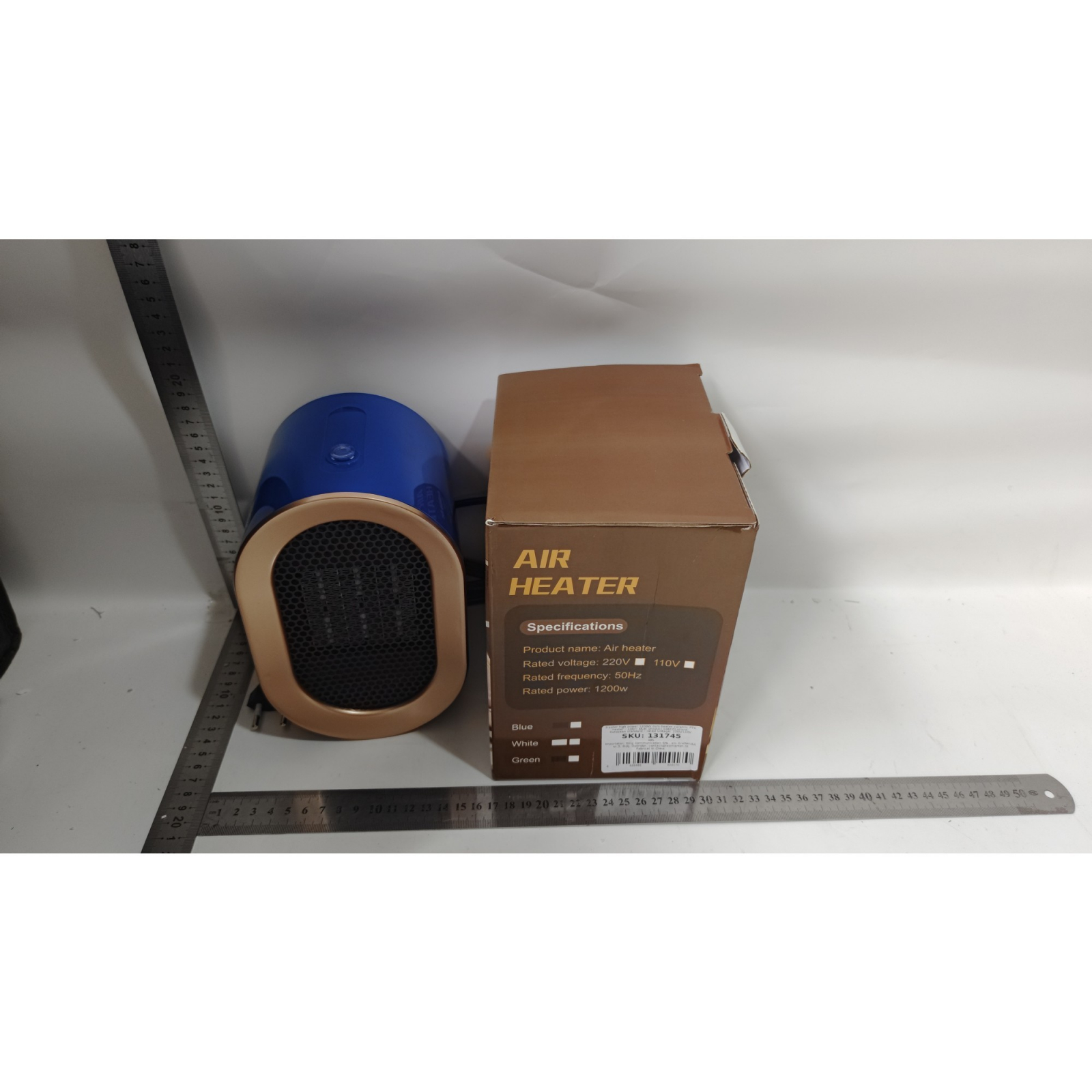 Informatii utile: Greutate:800 g, Latime:12.5 cm, Lungime:19.5 cm, Destinat pentru:Interior, Design:Compact, Trepte putere:2, Tensiune alimentare:220 V, Functii:Aeroterma, Putere maxima:1200 W, Recomandat pentru incaperi pana la:20 m², Inaltime:19.5 cm, Culoare:Albastru