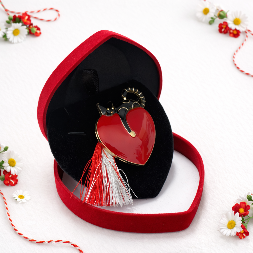 Brosa inima rosie martisor cu strasuri negre este un accesoriu elegant si plin de emotie, creat special pentru a celebra iubirea, feminitatea si frumusetea primaverii. Designul in forma de inima simbolizeaza dragostea, afectiunea si energia pozitiva, fiind alegerea perfecta pentru un cadou de martisor cu semnificatie speciala.