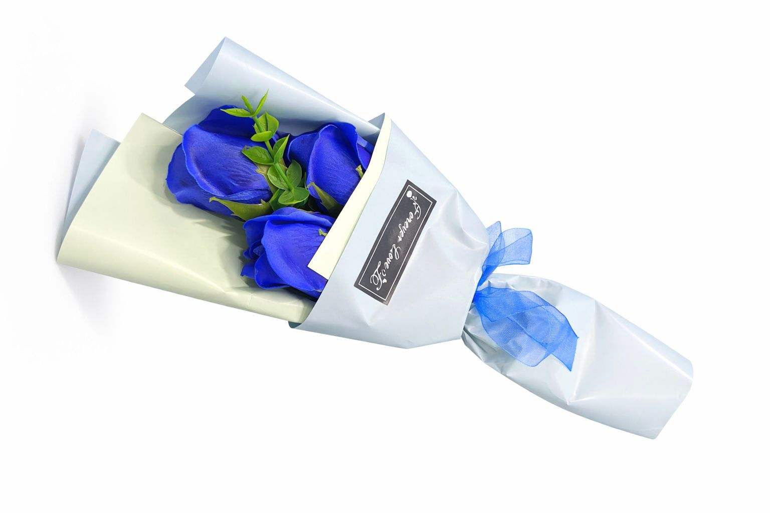 Buchetul cu 3 trandafiri de sapun este un aranjament decorativ elegant, ideal pentru a fi oferit cadou sau utilizat ca decor interior. Trandafirii sunt realizati din sapun cu aspect realist, atent finisat, oferind o alternativa durabila la florile naturale.