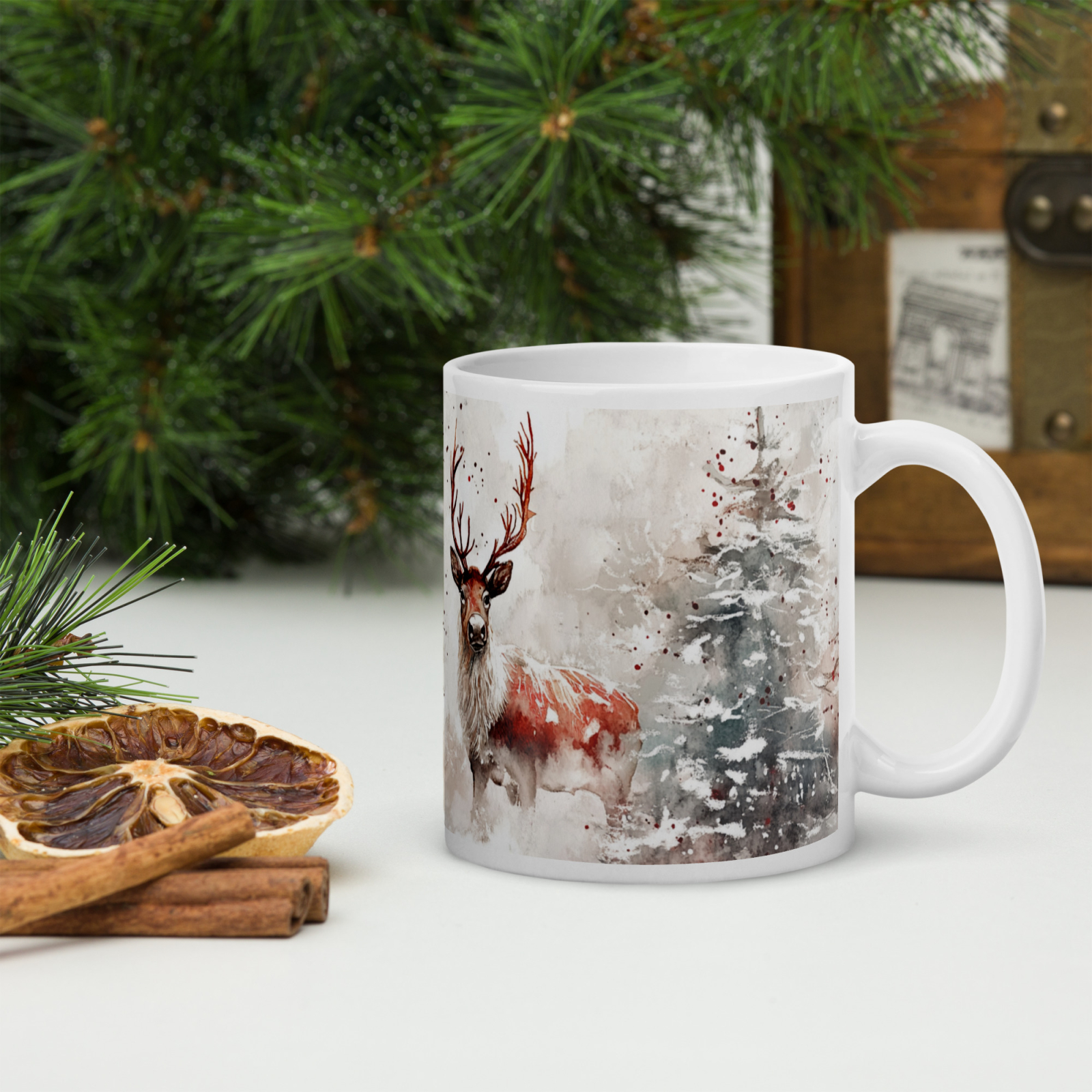 Cana din ceramică de 11 oz / 330 ml aduce o notă festivă oricărei pauze de cafea. Finisajul lucios, marginea confortabilă și mânerul ergonomic asigură o experiență plăcută de utilizare în sezonul rece.