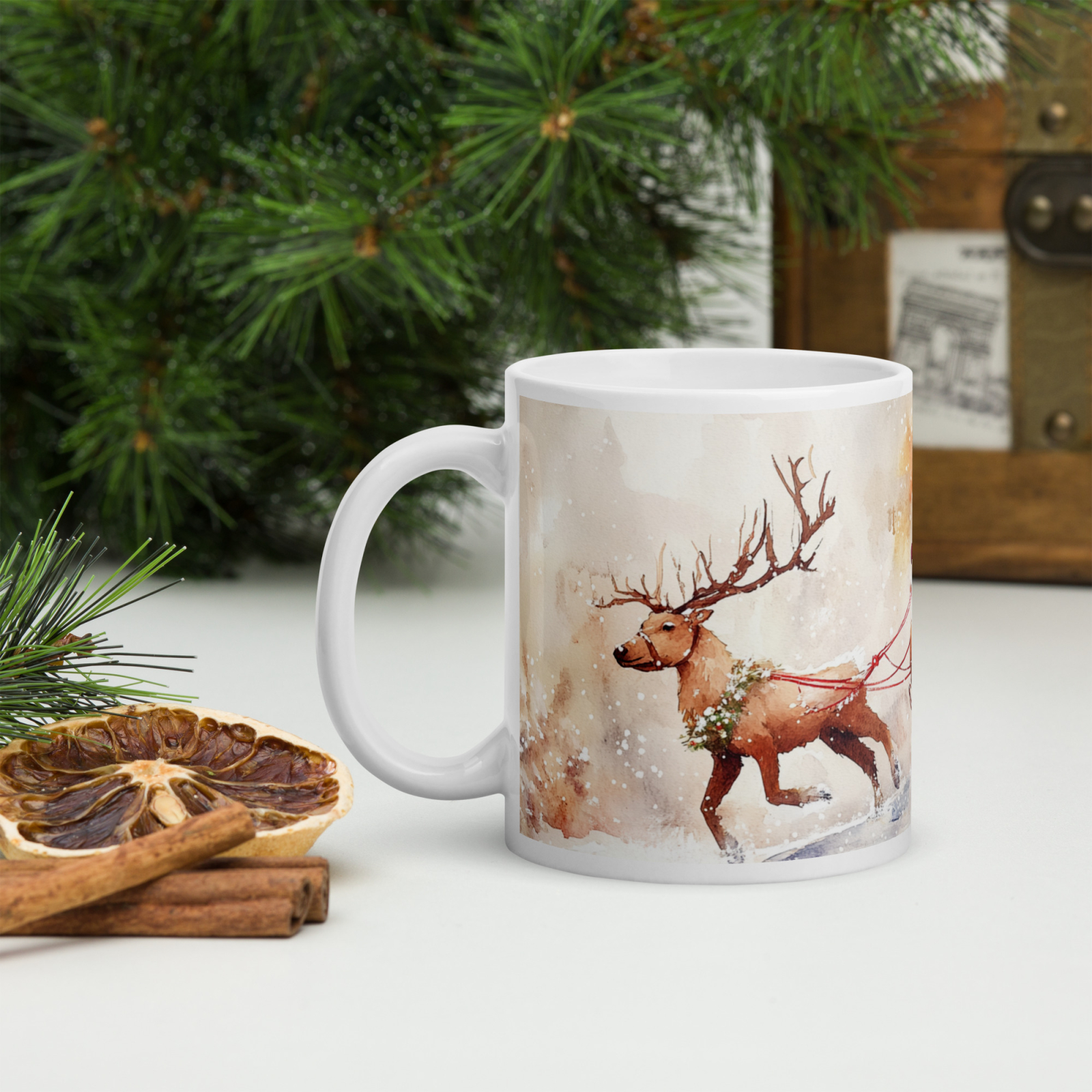 Cana din ceramică de 11 oz / 330 ml aduce o notă festivă oricărei pauze de cafea. Finisajul lucios, marginea confortabilă și mânerul ergonomic asigură o experiență plăcută de utilizare în sezonul rece.