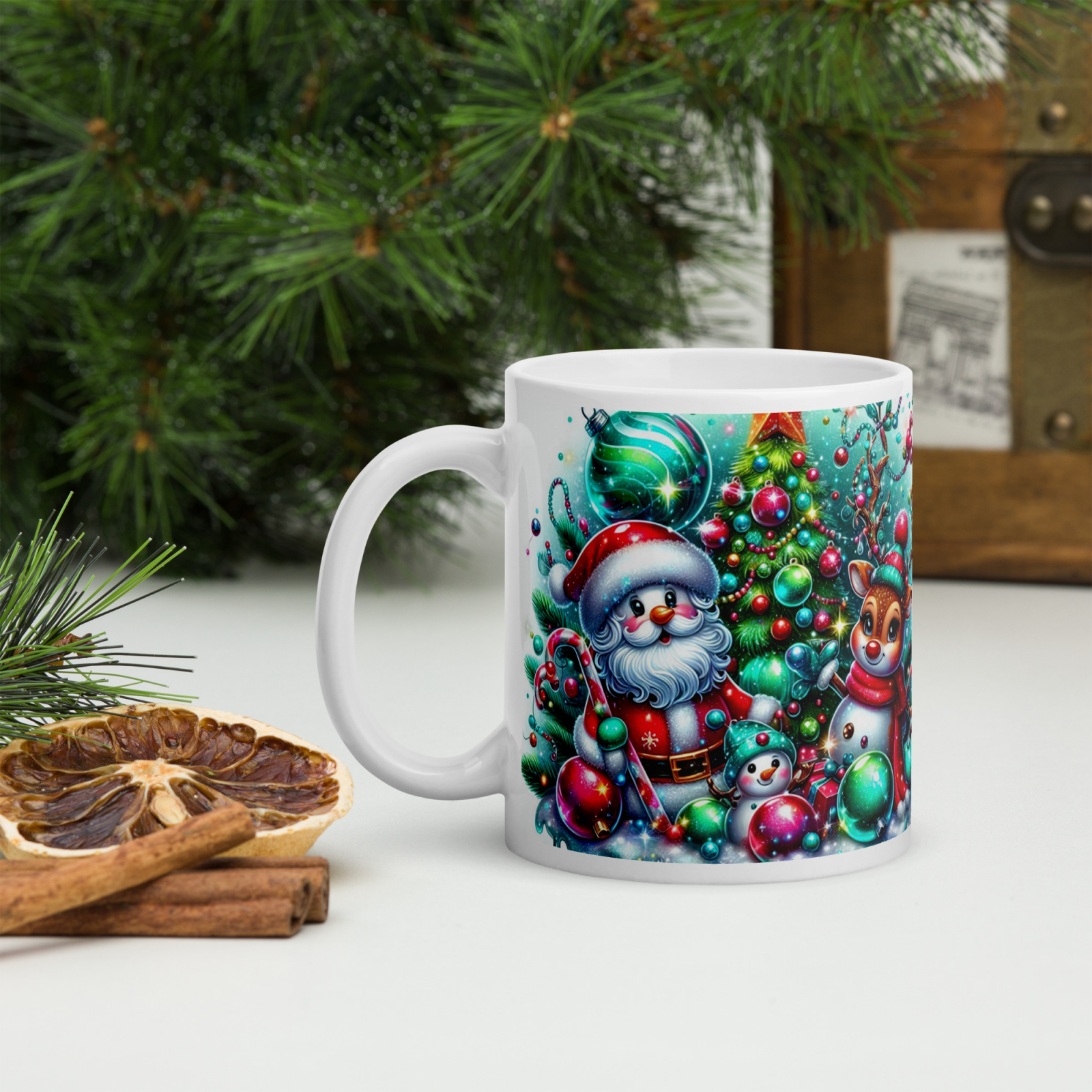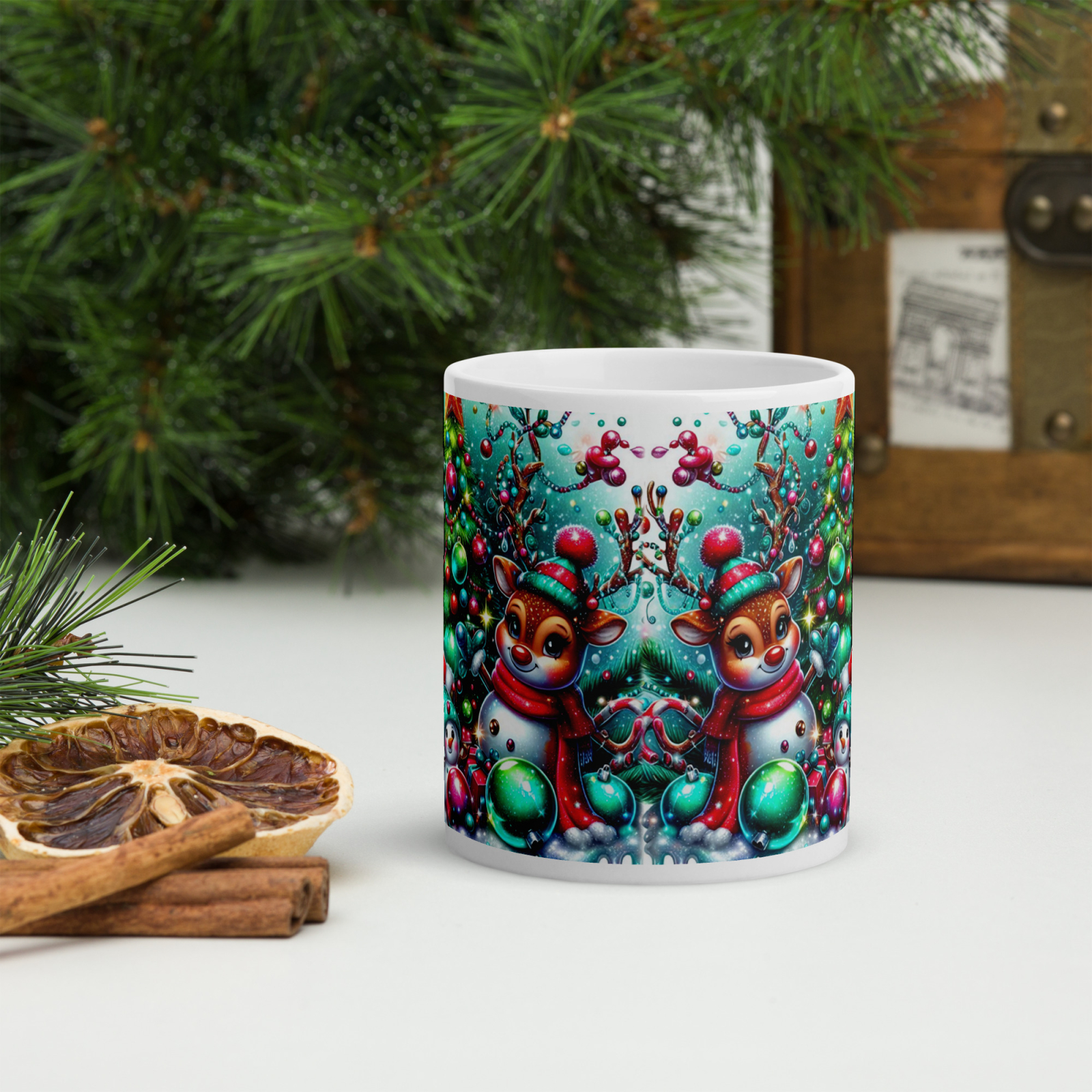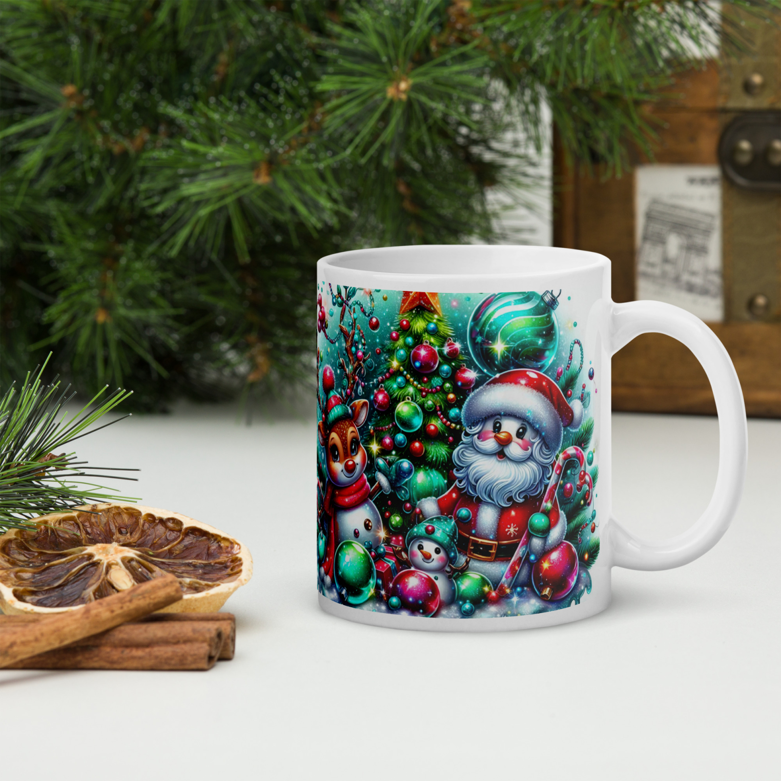 Cana din ceramică de 11 oz / 330 ml aduce o notă festivă oricărei pauze de cafea. Finisajul lucios, marginea confortabilă și mânerul ergonomic asigură o experiență plăcută de utilizare în sezonul rece.