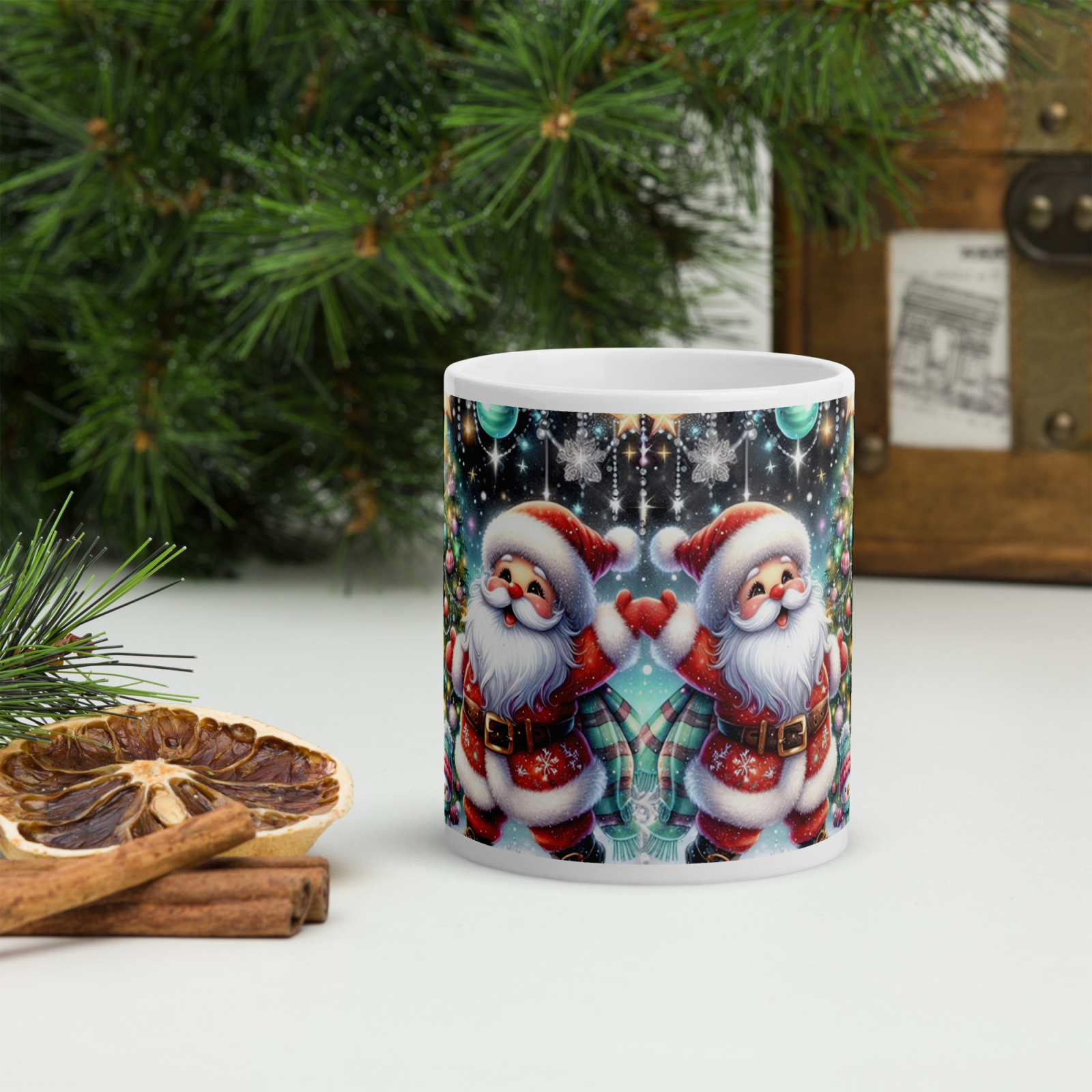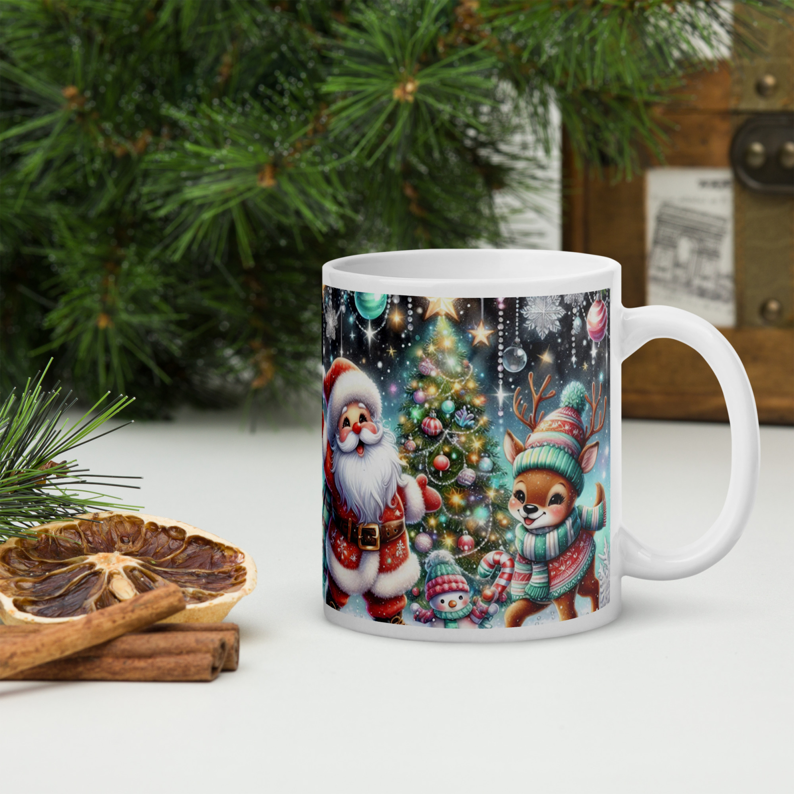 Cana din ceramică de 11 oz / 330 ml aduce o notă festivă oricărei pauze de cafea. Finisajul lucios, marginea confortabilă și mânerul ergonomic asigură o experiență plăcută de utilizare în sezonul rece.