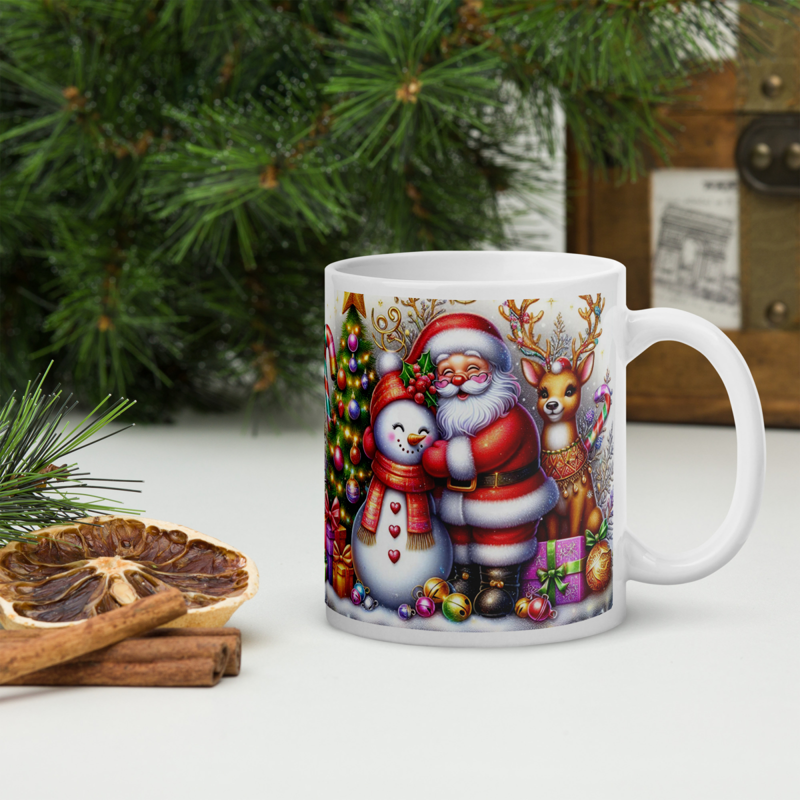 Cana din ceramică de 11 oz / 330 ml aduce o notă festivă oricărei pauze de cafea. Finisajul lucios, marginea confortabilă și mânerul ergonomic asigură o experiență plăcută de utilizare în sezonul rece.