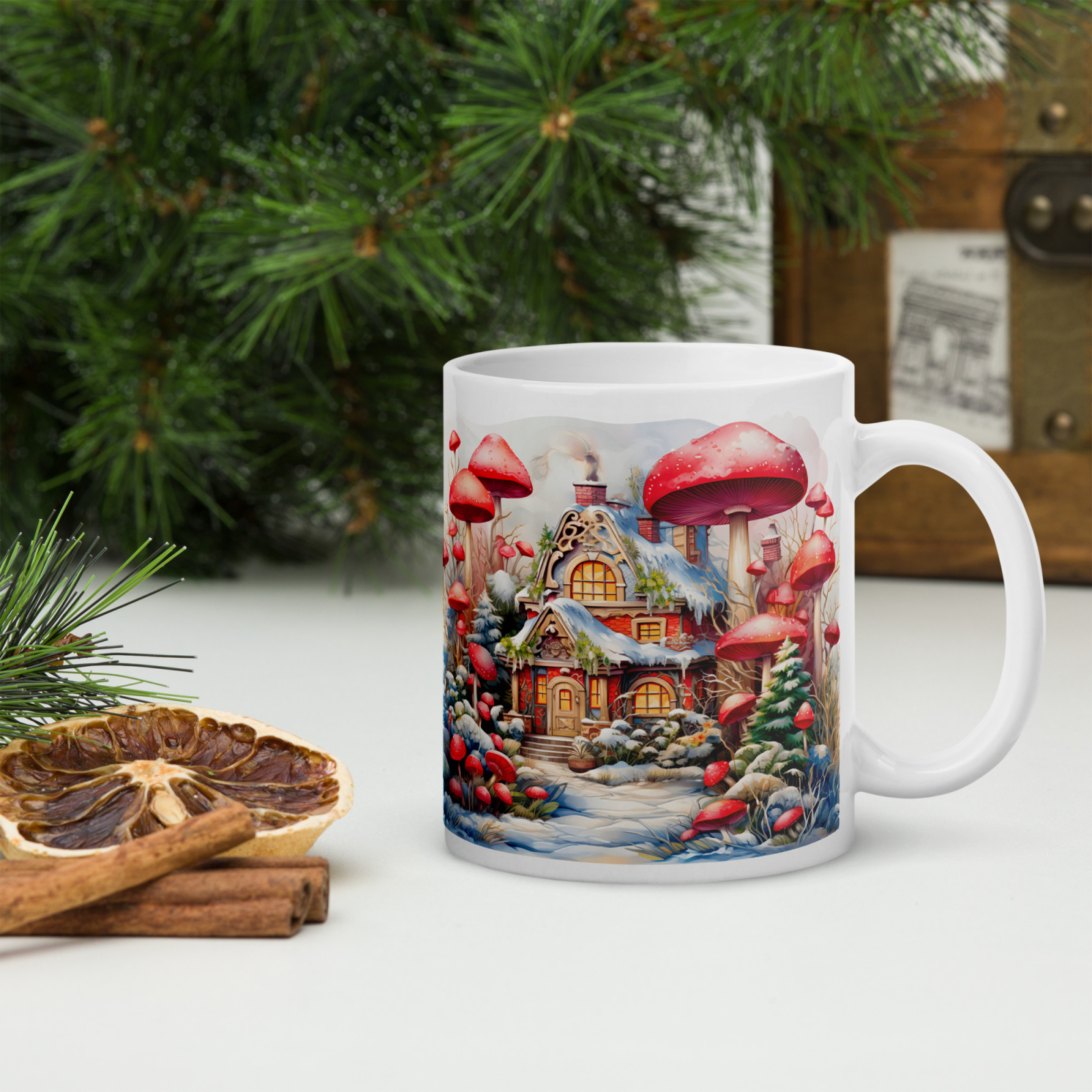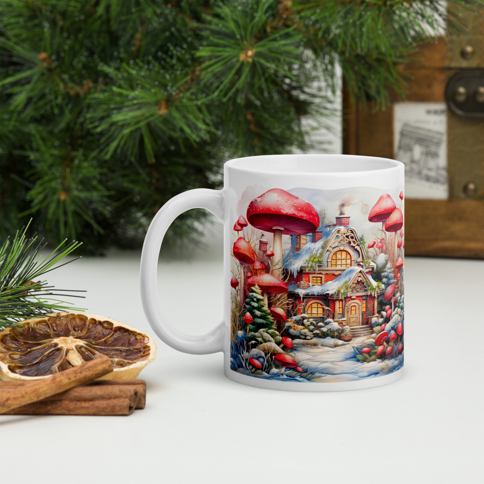 Cana din ceramică de 11 oz / 330 ml aduce o notă festivă oricărei pauze de cafea. Finisajul lucios, marginea confortabilă și mânerul ergonomic asigură o experiență plăcută de utilizare în sezonul rece.