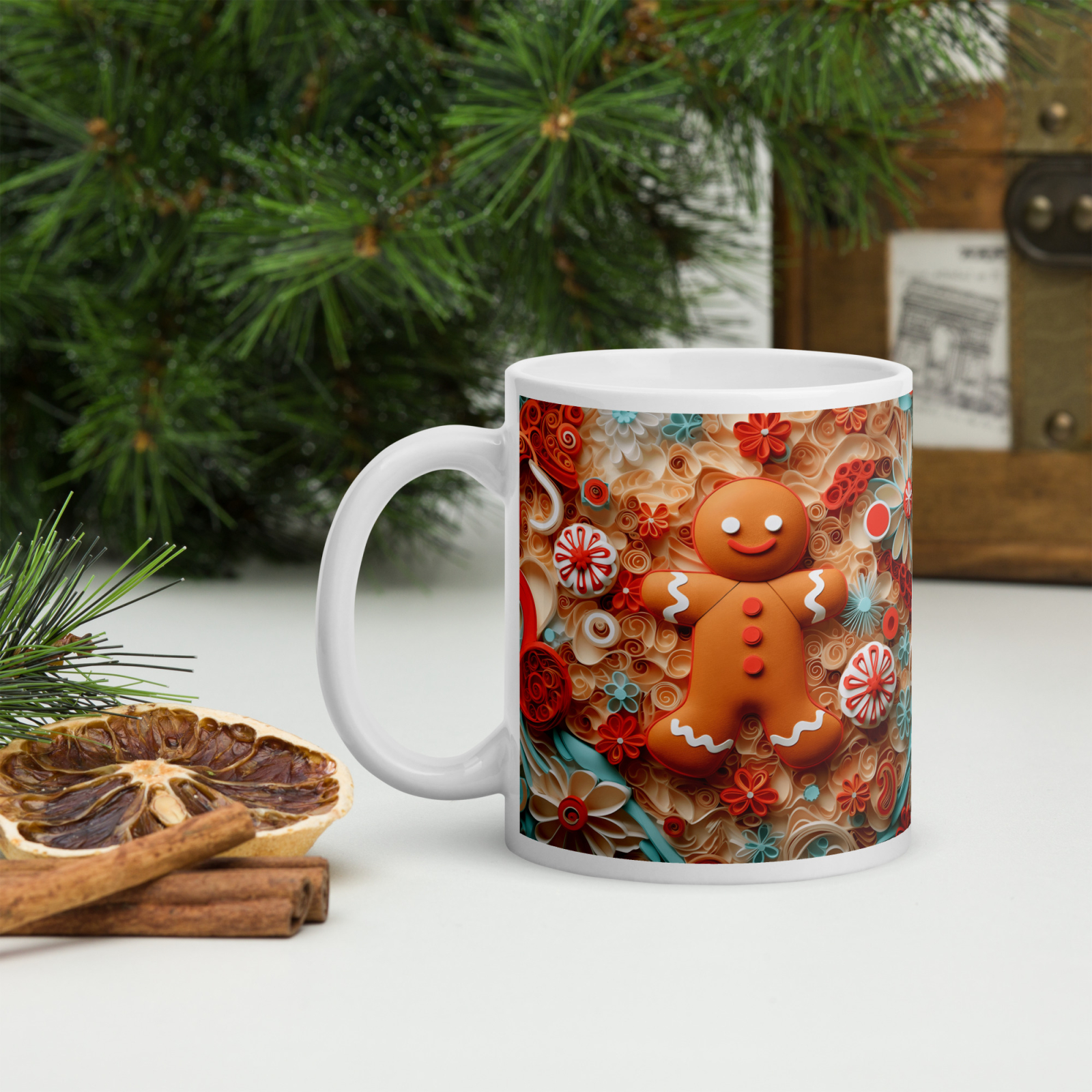 Cana din ceramică de 11 oz / 330 ml aduce o notă festivă oricărei pauze de cafea. Finisajul lucios, marginea confortabilă și mânerul ergonomic asigură o experiență plăcută de utilizare în sezonul rece.