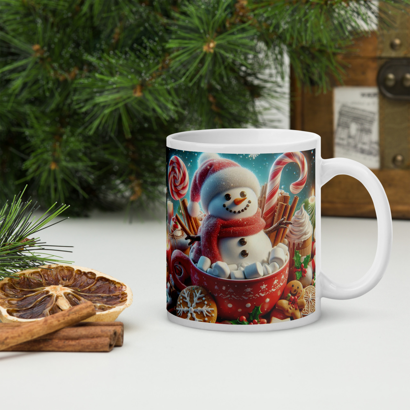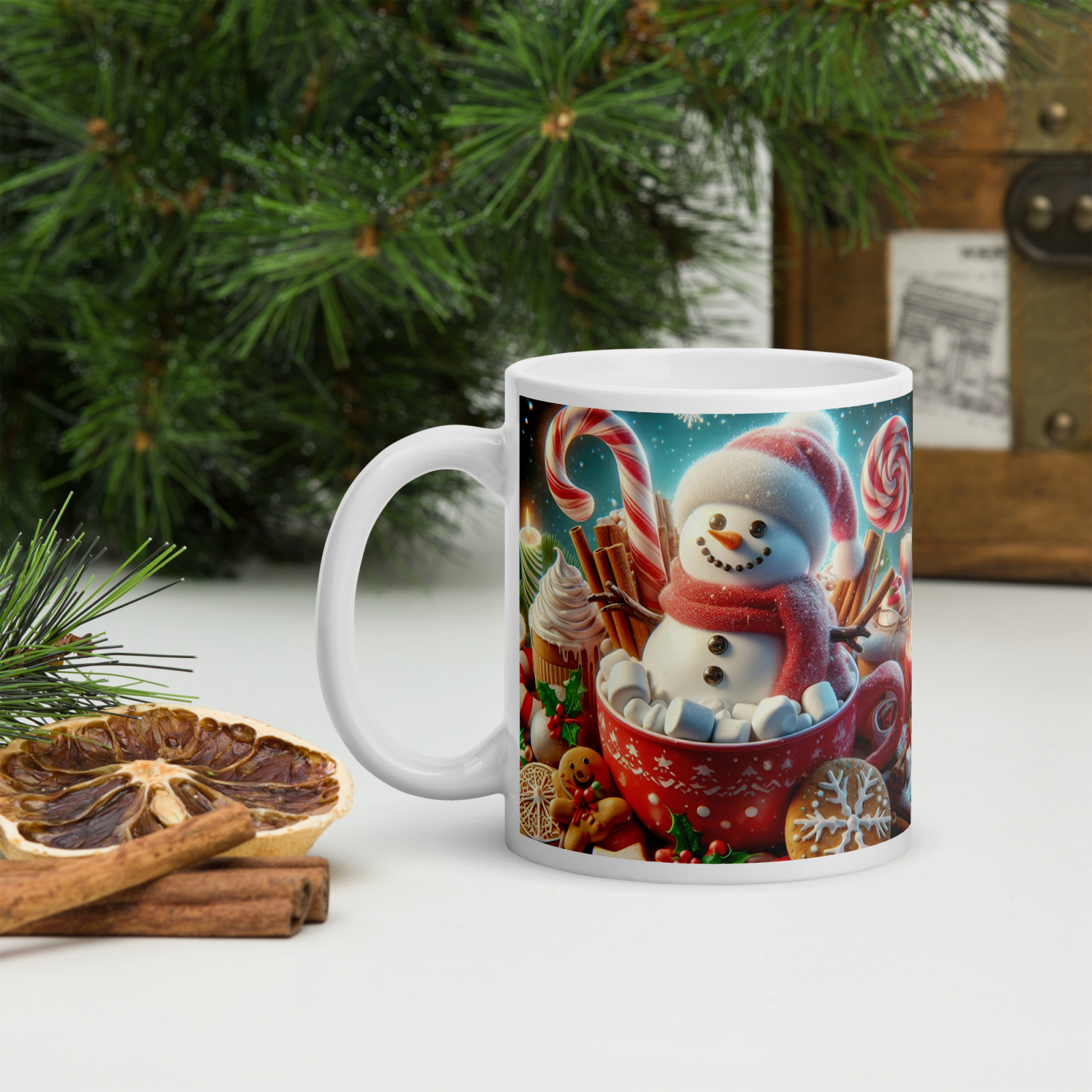 Cana din ceramică de 11 oz / 330 ml aduce o notă festivă oricărei pauze de cafea. Finisajul lucios, marginea confortabilă și mânerul ergonomic asigură o experiență plăcută de utilizare în sezonul rece.