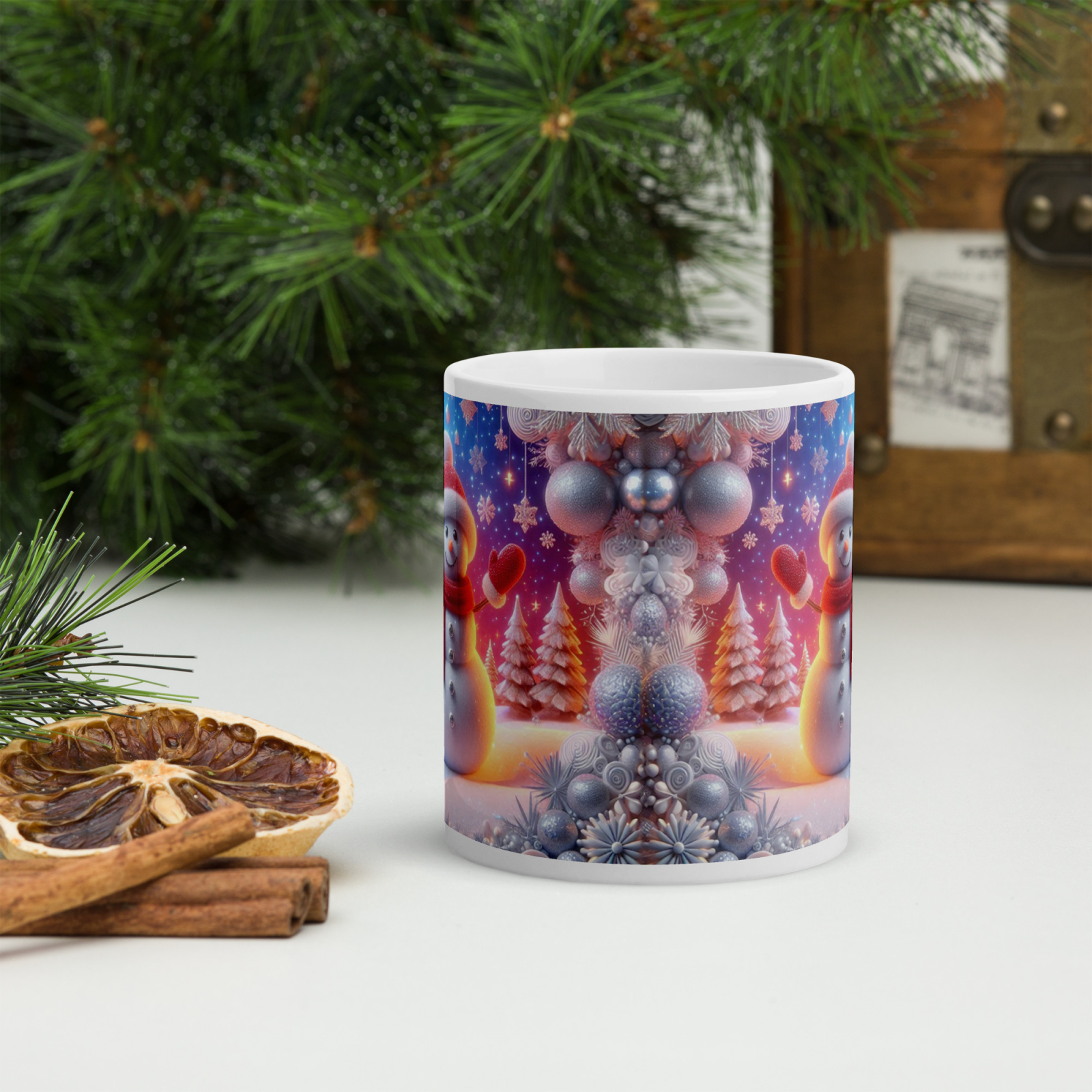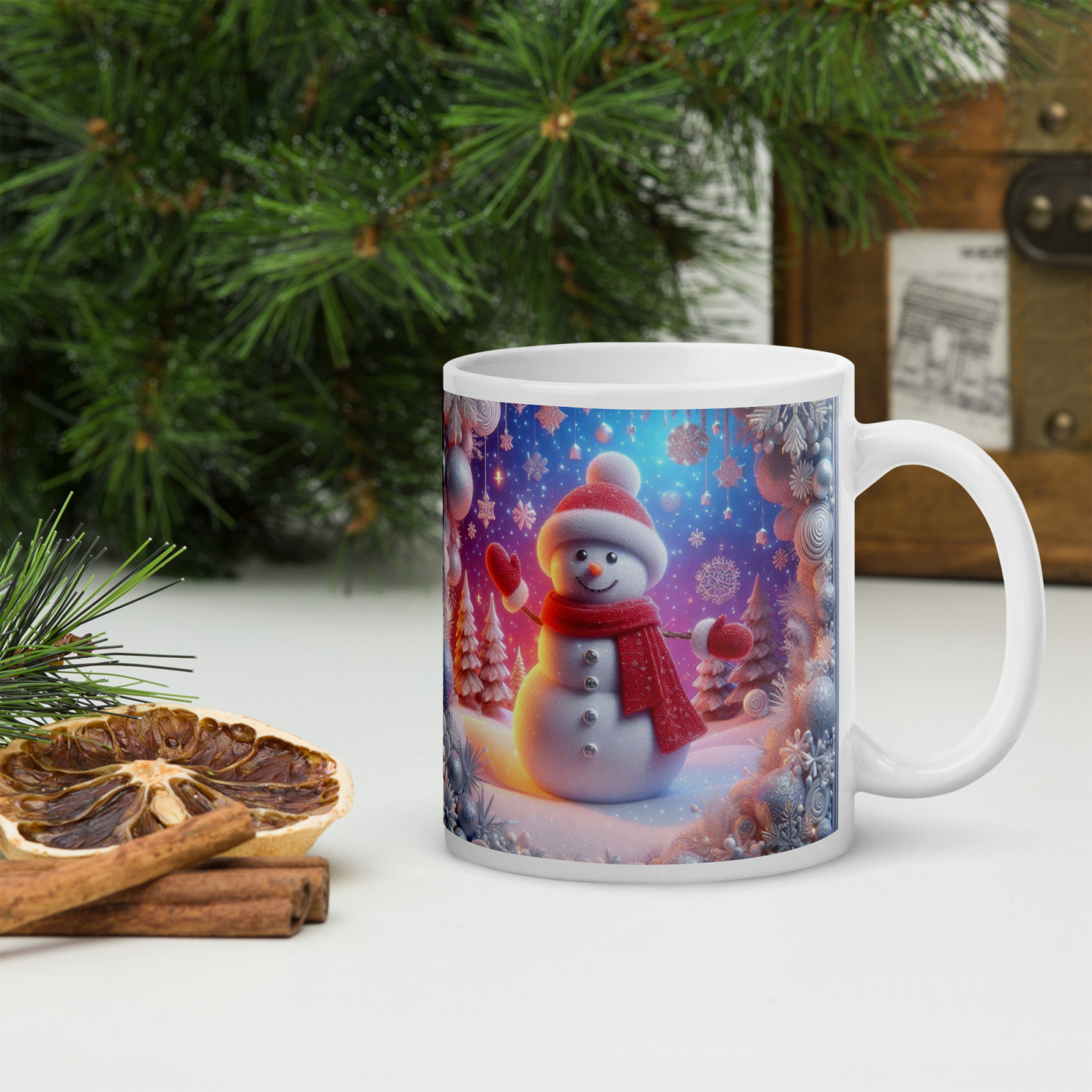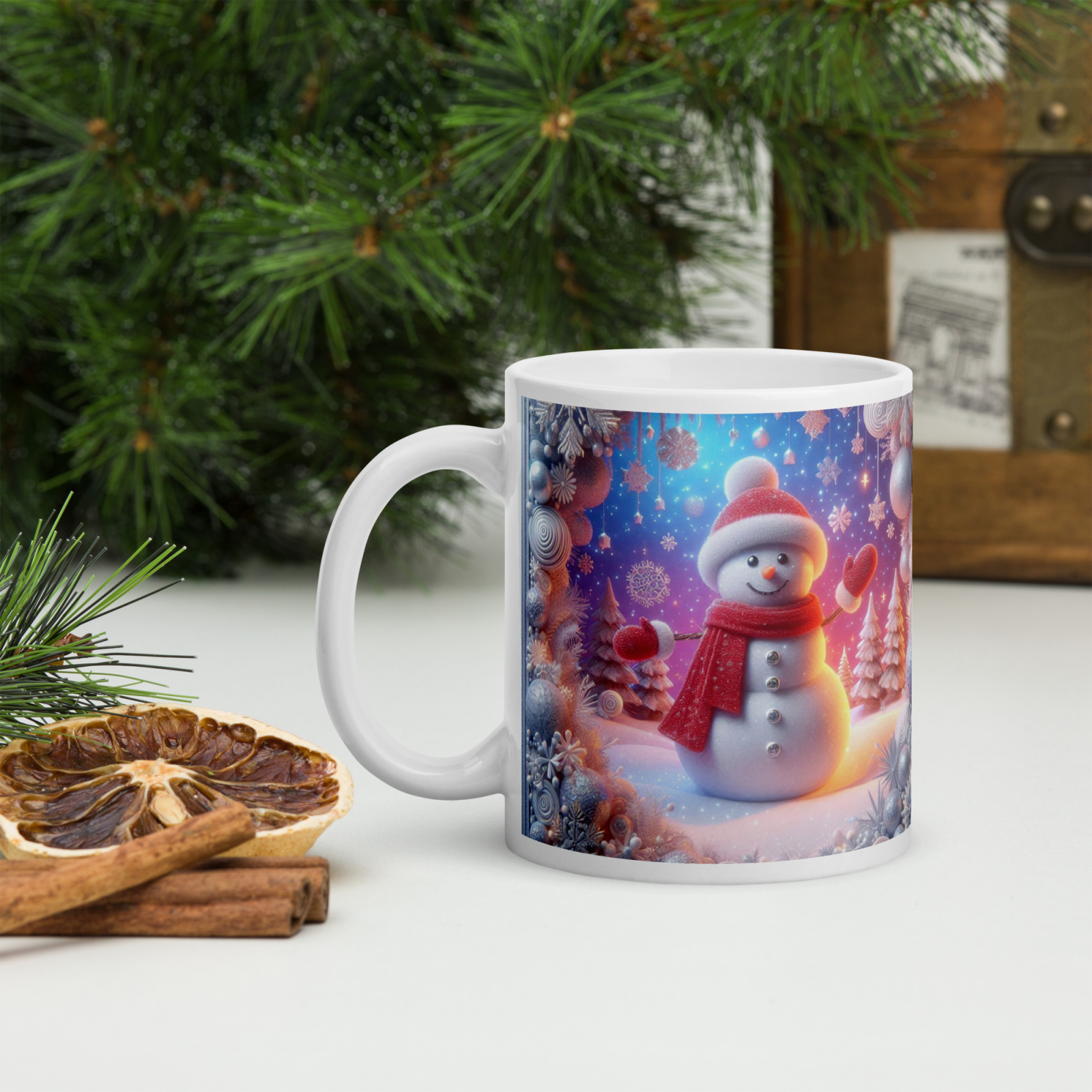 Cana din ceramică de 11 oz / 330 ml aduce o notă festivă oricărei pauze de cafea. Finisajul lucios, marginea confortabilă și mânerul ergonomic asigură o experiență plăcută de utilizare în sezonul rece.