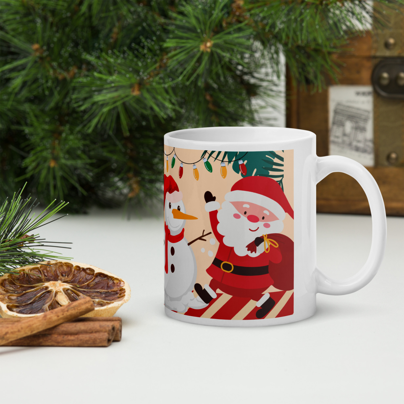 Cana din ceramică de 11 oz / 330 ml aduce o notă festivă oricărei pauze de cafea. Finisajul lucios, marginea confortabilă și mânerul ergonomic asigură o experiență plăcută de utilizare în sezonul rece.