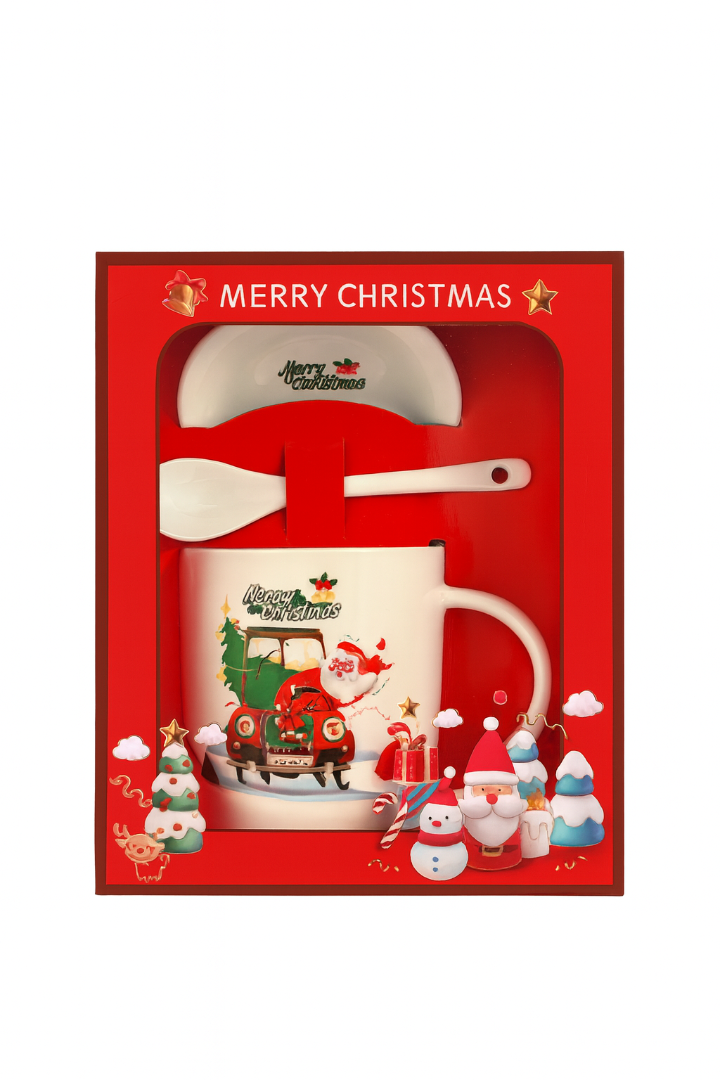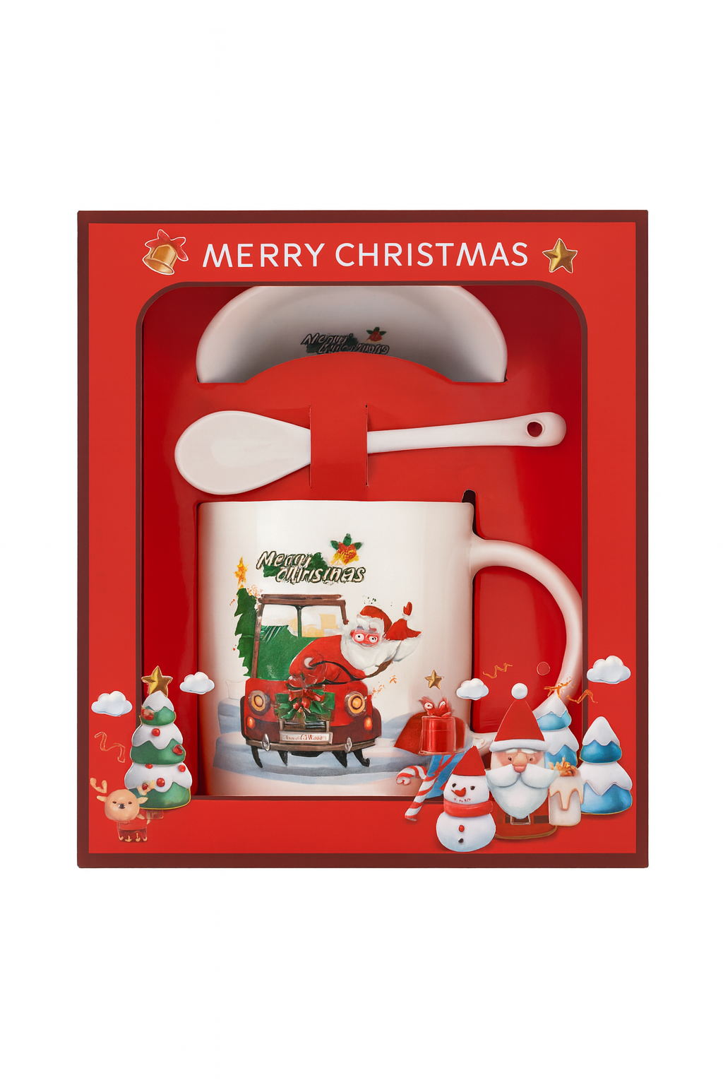 Transforma fiecare dimineata intr-un moment plin de magie cu acest set festiv de Craciun, format din cana ceramica premium, lingurita si farfurioara, toate ambalate intr-o cutie eleganta rosie cu tematica Merry Christmas. Modelul cu Mos Craciun sosind cu masina plina de cadouri aduce instant atmosfera sarbatorilor in casa ta.