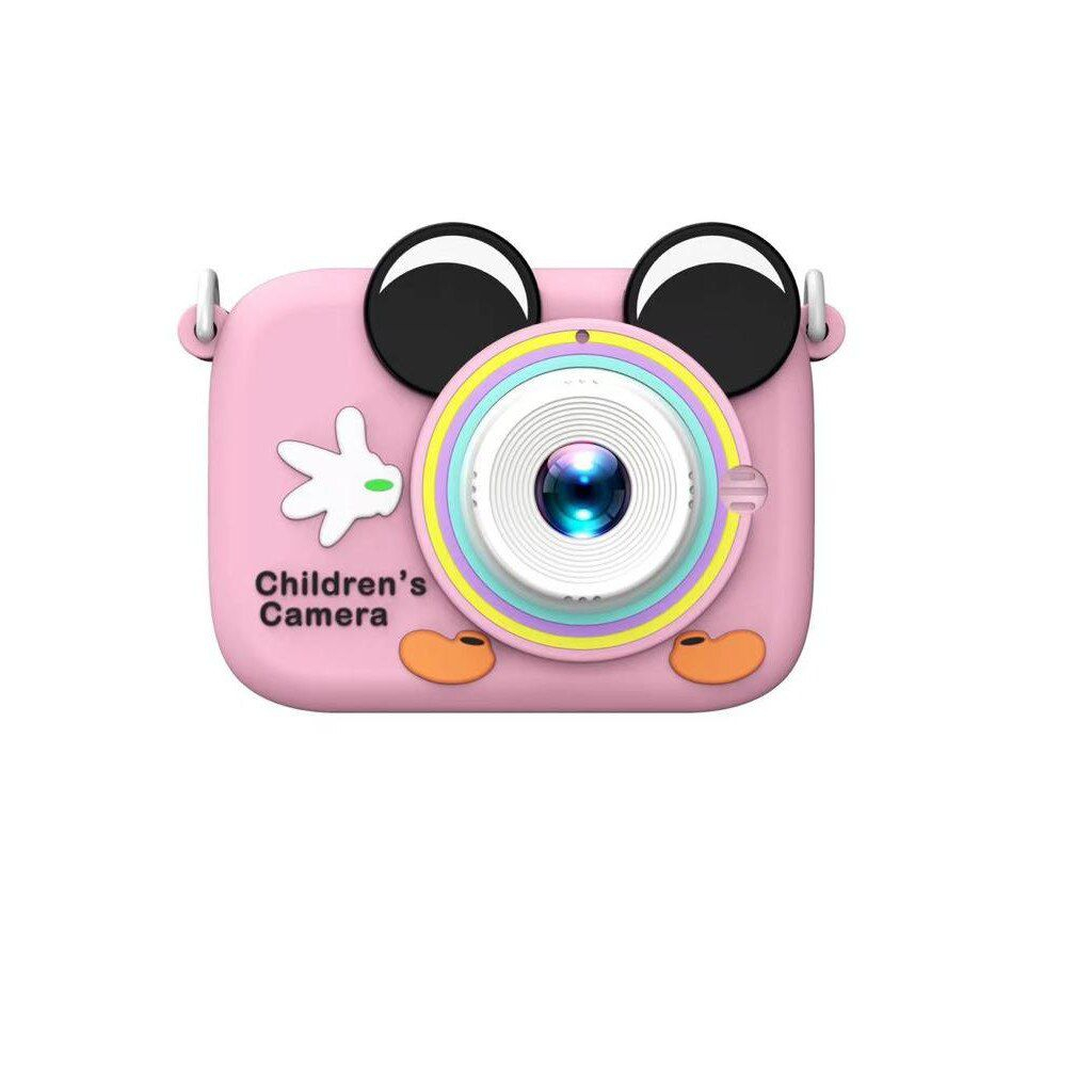 Camera foto digitala pentru copii, model roz cu soricel simpatic, este perfecta pentru micii fotografi care vor sa exploreze si sa surprinda momentele frumoase ale copilariei. Carcasa din silicon moale protejeaza camera, ii ofera aderenta si un aspect adorabil.
