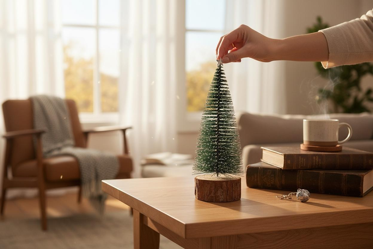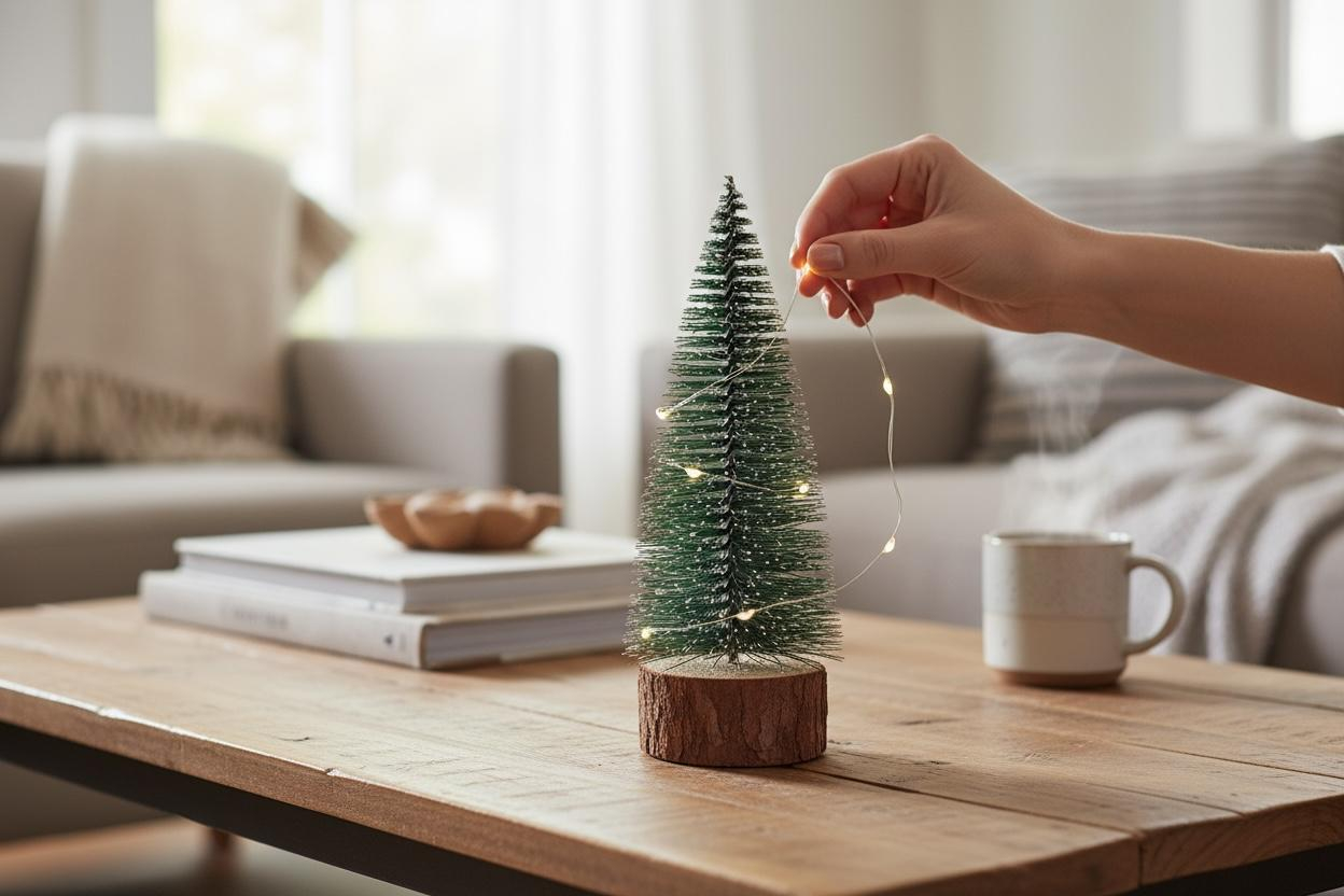 Adauga farmec sarbatorilor cu un brad decorativ luminos cu aspect natural si baza din lemn!