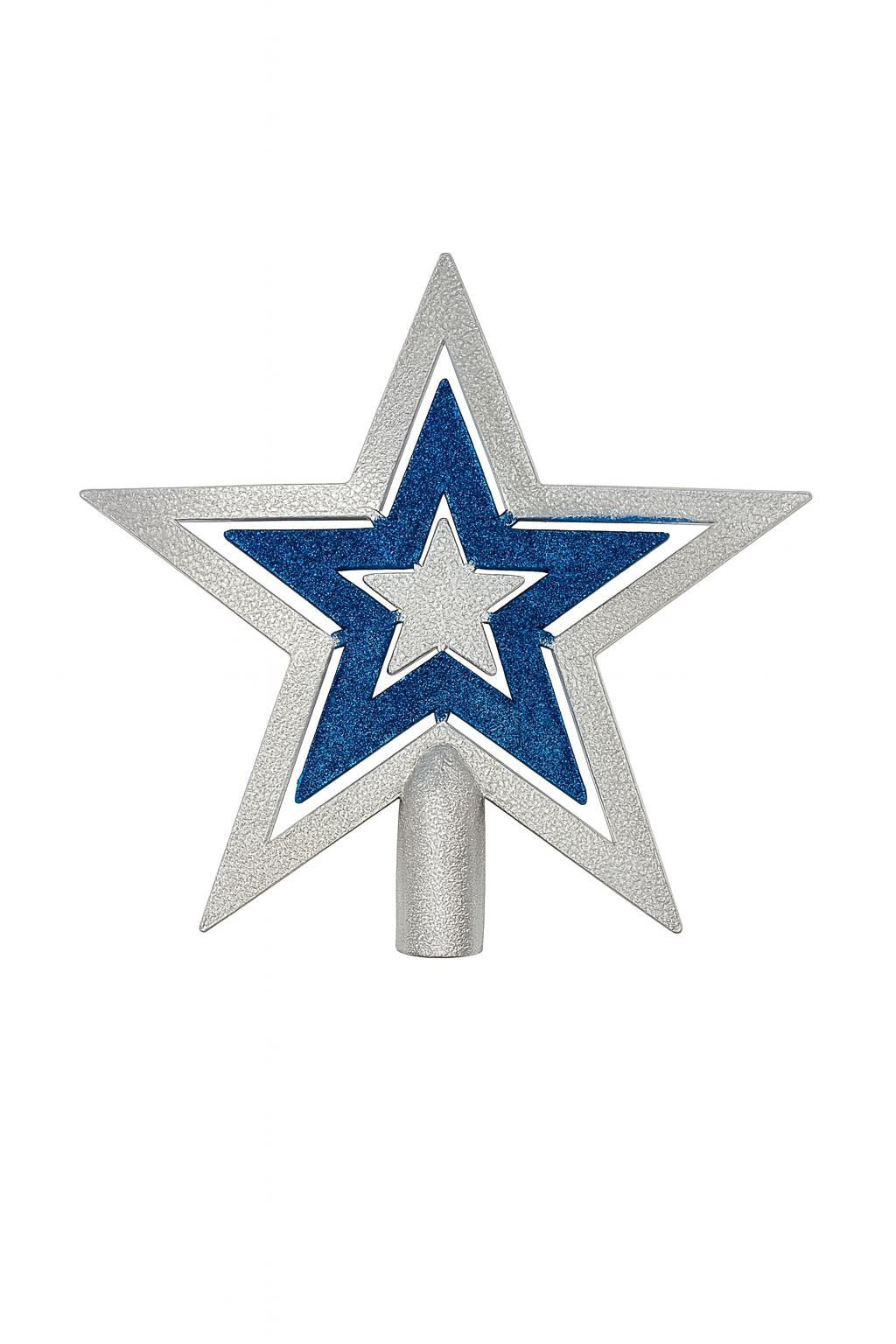 Incoroneaza-ti bradul de Craciun cu acest varf decorativ modern in forma de stea, o piesa centrala atemporala pentru sarbatori. Designul unic prezinta un dublu strat: o stea exterioara argintie mata si o stea interioara albastra vibranta, cu efect de sclipici.
