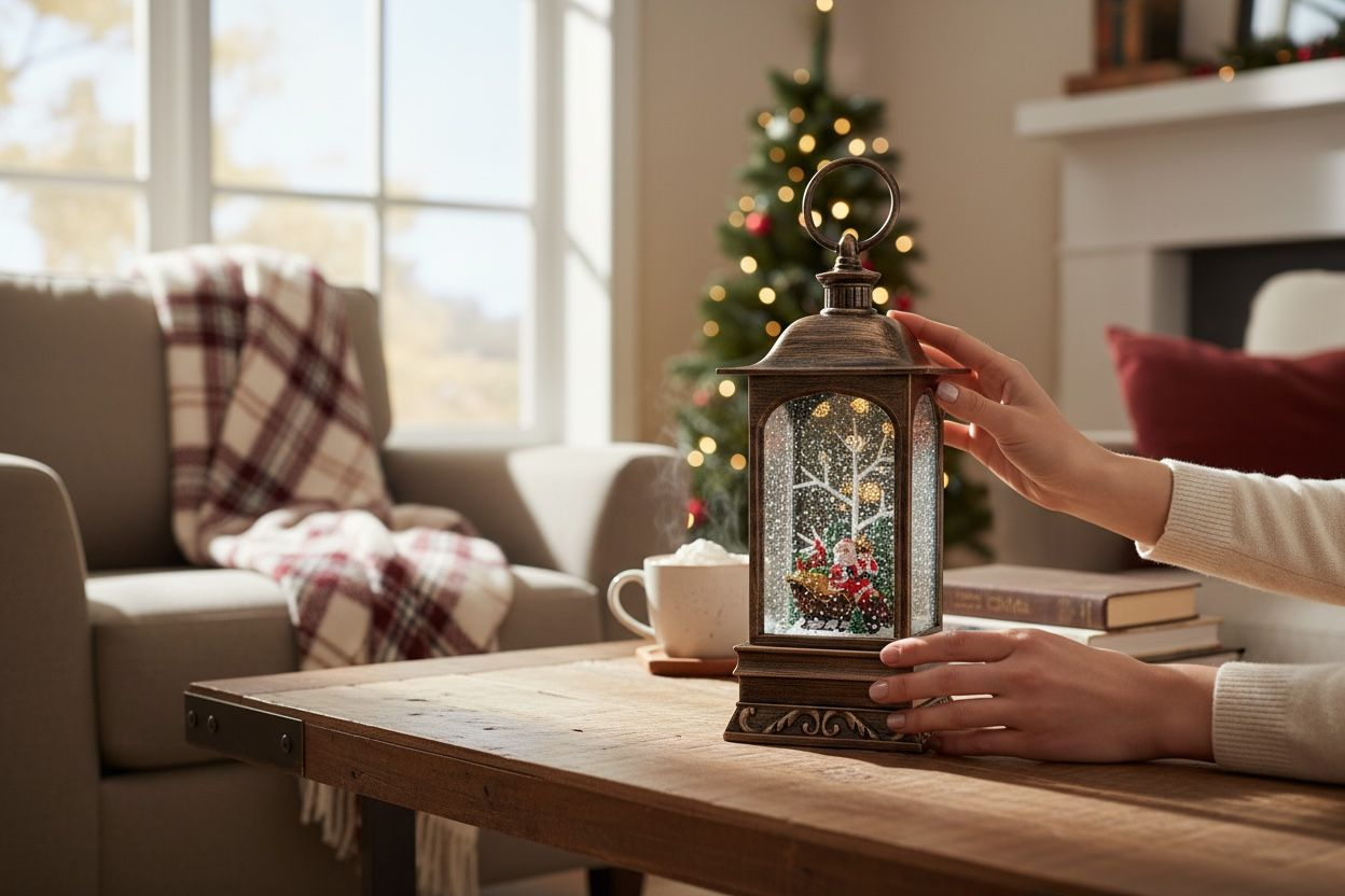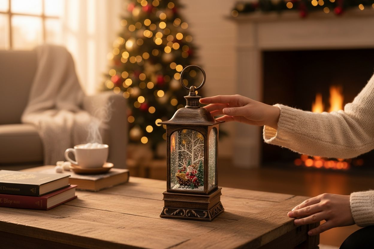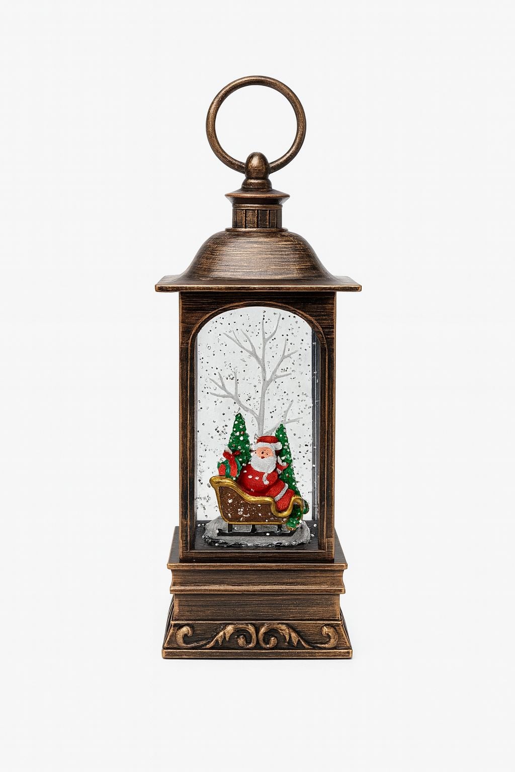 Adauga magie in decorul de sarbatori cu acest felinar decorativ de Craciun, prevazut cu lumini LED calde si functie muzicala cu colinde. Designul elegant in stil vintage include o scena festiva cu Mos Craciun, perfecta pentru a crea o atmosfera calda si vesela in orice incapere.