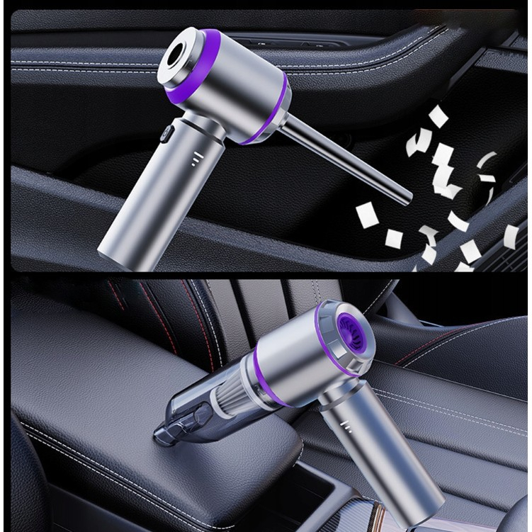 Aspirator Portabil Auto, , pentru Casa si Masina, 3 Viteze, Incarcator Tip-C cu Incarcare Rapida, Tub Prelungitor, 2000mAh, 7 Capete de Aspirare si Suflare, 21x20x6.5 cm, Argintiu Mov