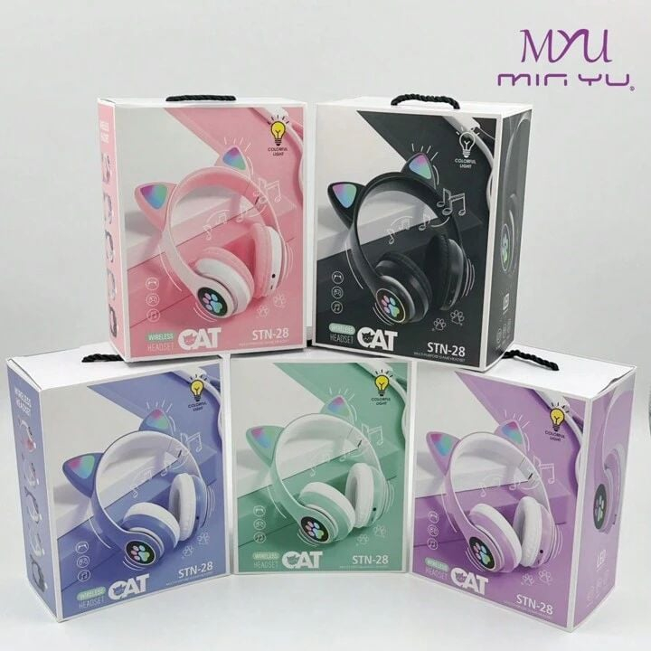Casti wireless STN-28, model Pisicuta, autonomie 7h, raza de acțiune pana la 10m, diverse culori