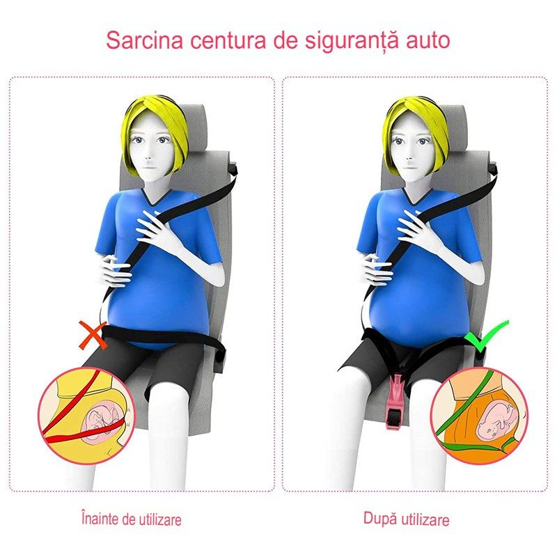 - Cureaua este realizata cu colturi ovale, iar designul barei asigura cureaua sa nu iasă din dispozitivul de reglare a centurii de maternitate, astfel incat pasagerii sa fie in siguranta si protejați in orice moment.