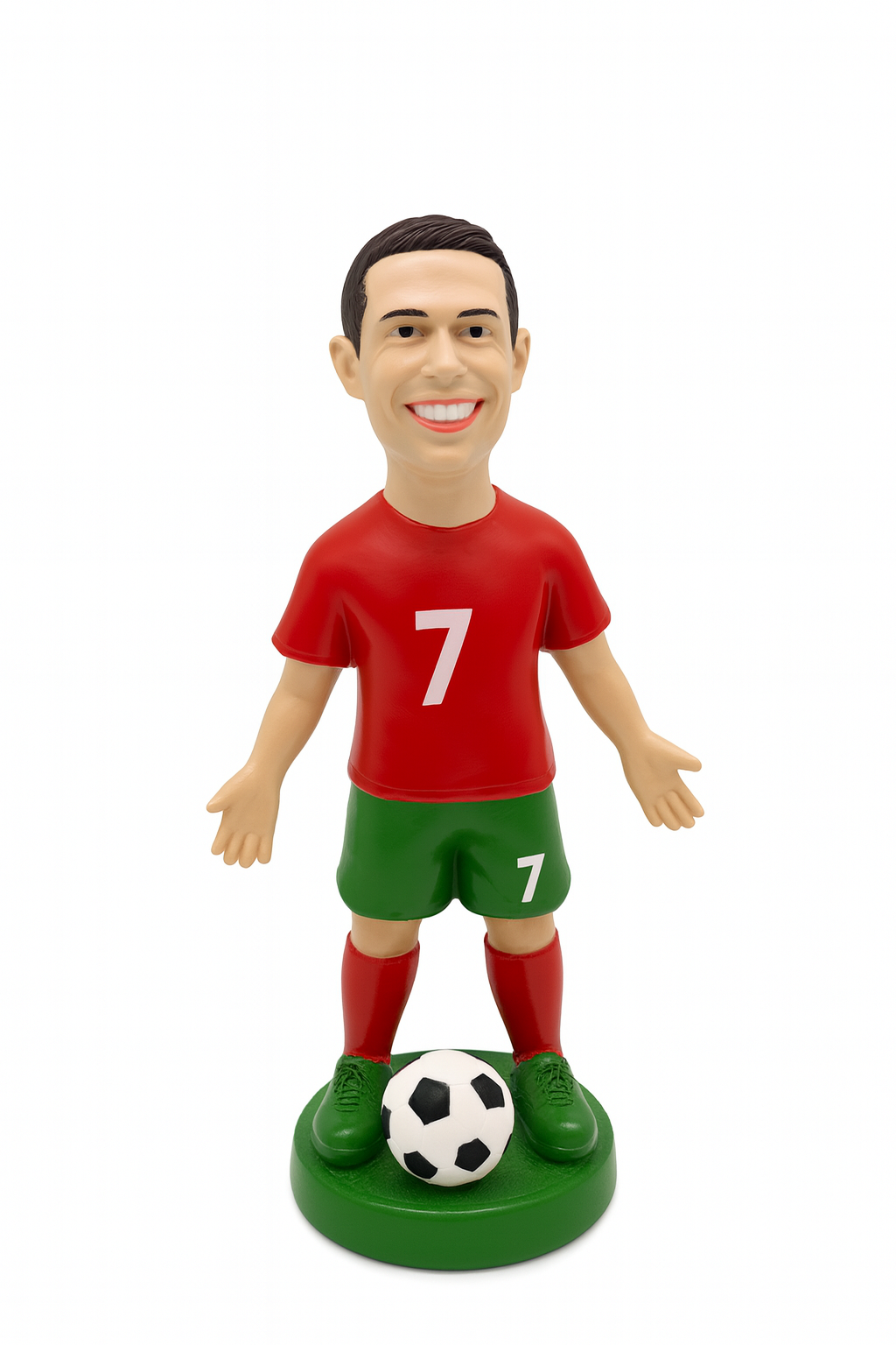 Fabricata din ceramica de calitate, figurina este atent pictata manual, cu detalii expresive si culori vibrante. Baza stabila o face ideala pentru expunere pe raft, birou, vitrina sau intr-un colt tematic dedicat pasionatilor de fotbal.