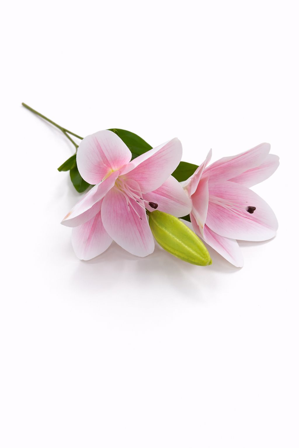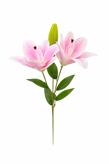 Crin artificial decorativ in nuanta alb cu roz pal fin, diferit ca intensitate si distributie a culorii fata de celelalte variante, oferind un aspect mai echilibrat si natural. Buchetul este format din doua flori deschise, un boboc si frunze verzi bine proportionate, toate dispuse pe un singur fir solid pentru un aspect curat si elegant. Cu o inaltime de aproximativ 63 cm, acest crin artificial este potrivit pentru decoruri luminoase, aranjamente florale discrete, vaze sau spatii care au nevoie de un accent floral rafinat, fara intretinere.
