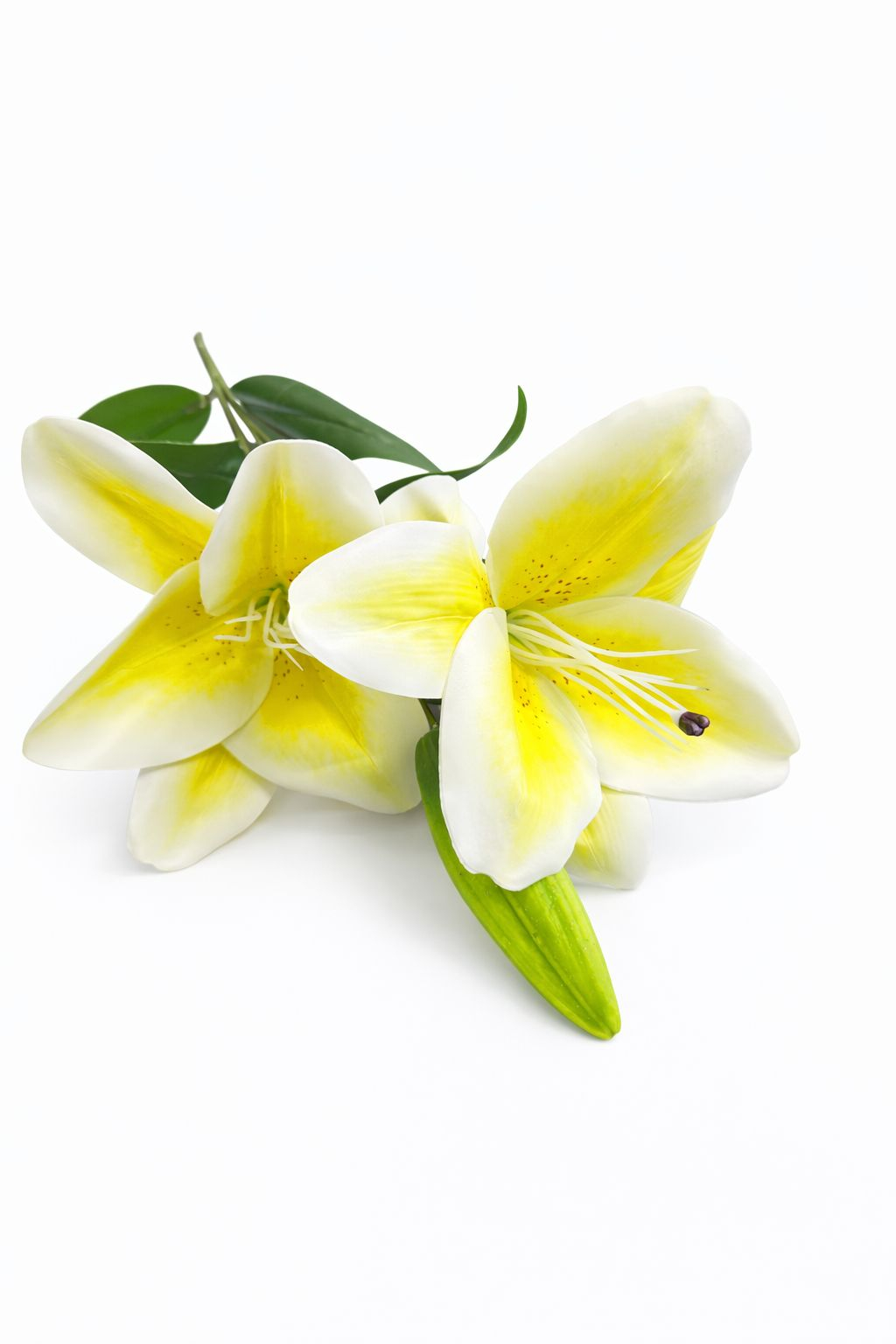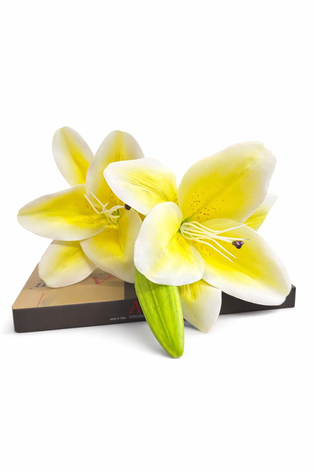 Crin artificial realizat cu un aspect elegant si luminos, inspirat din frumusetea naturala a crinului real. Florile imbina armonios nuanta galben cu alb, oferind un efect proaspat si rafinat care atrage privirea. Planta este compusa din 2 flori deschise, un boboc si frunze bine conturate, contribuind la un aspect natural si echilibrat. Inaltimea totala a firului este de aproximativ 70 cm, iar diametrul fiecarei flori este de 14 cm, fiind potrivit pentru vaze inalte, aranjamente florale sau decoruri care aduc luminozitate si eleganta fara intretinere.