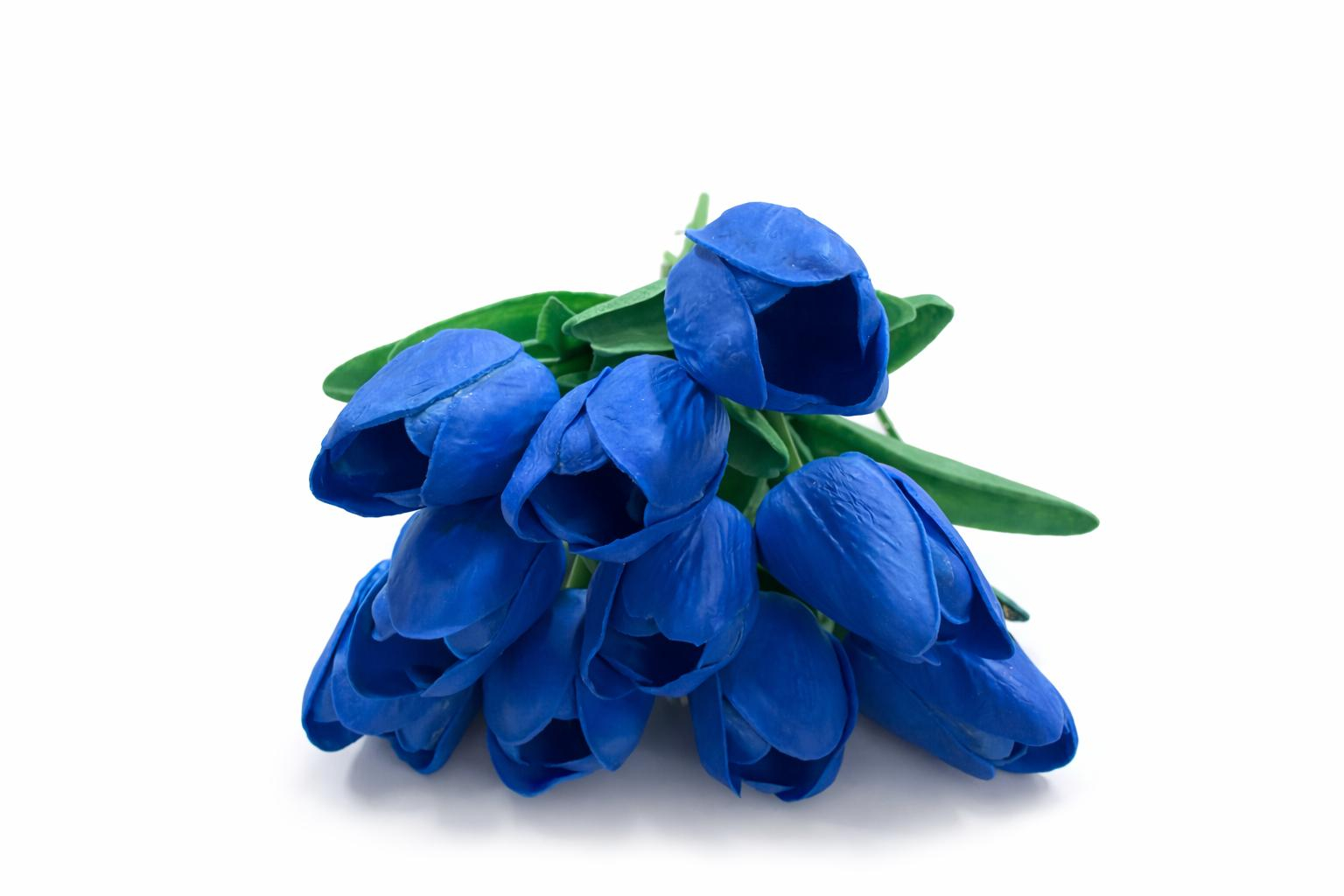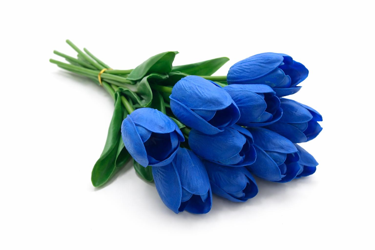 Set 10 lalele artificiale albastru intens soft touch, fir individual 33cm